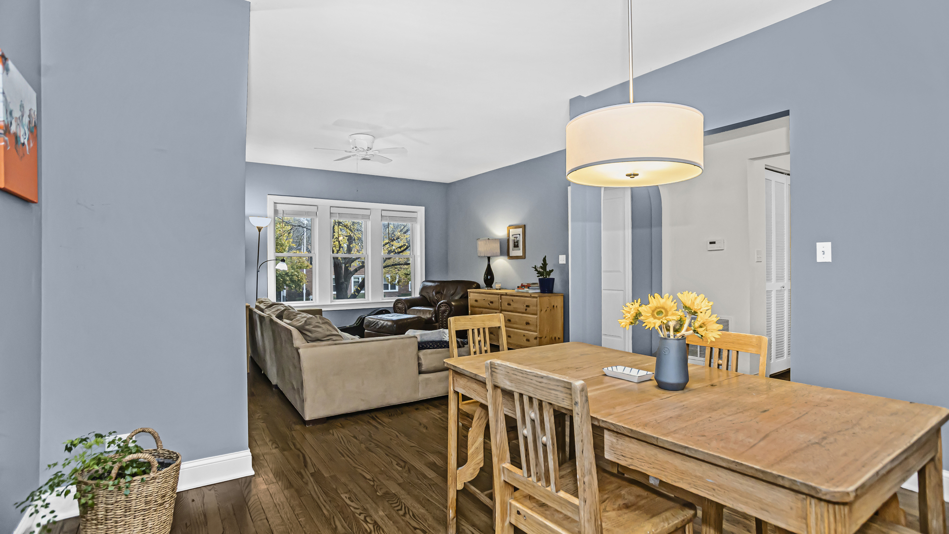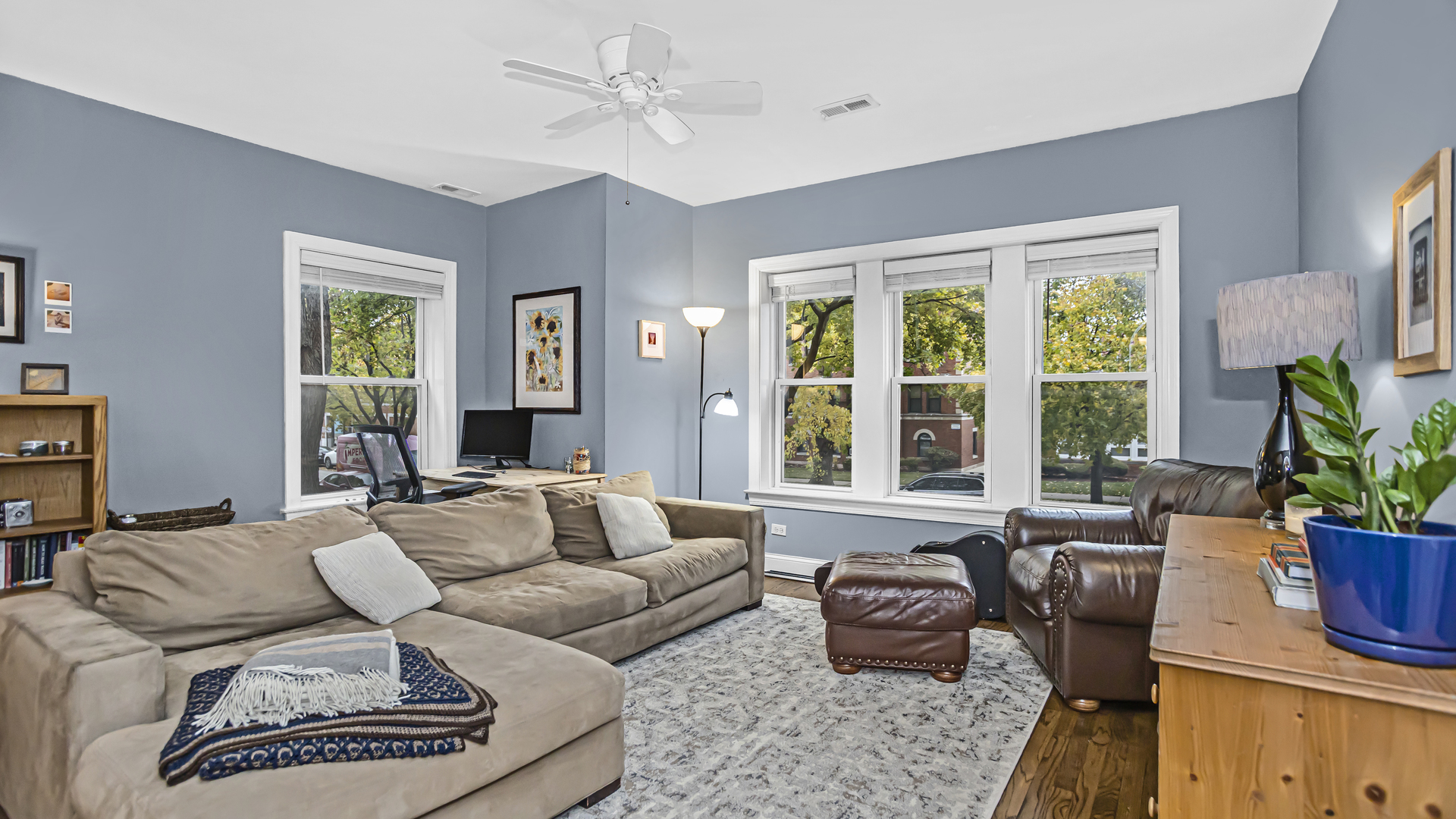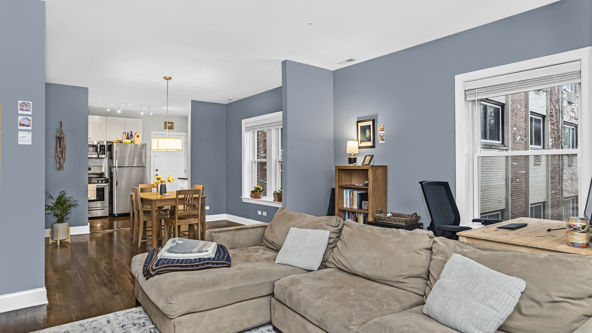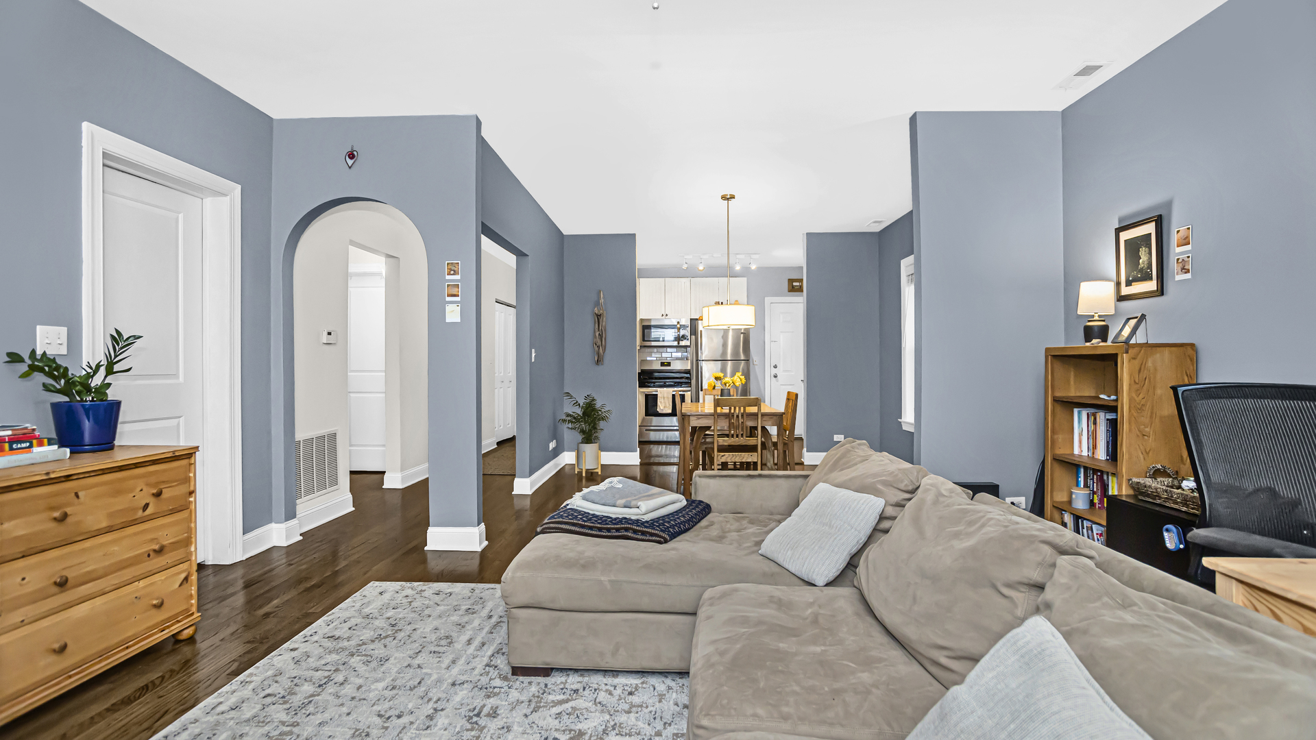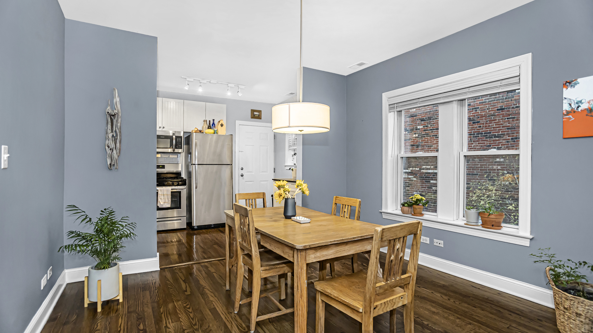 Welcome to 1230 Elmwood Unit 1E, a delightful condo in the heart of Evanston. As you step inside, you'll be greeted by a light-filled living area that sets the stage for relaxation and entertainment. The open layout seamlessly connects the living space to the dining room and the kitchen. The kitchen features sleek countertops, newer stainless steel appliances, and ample storage space. You'll find two spacious bedrooms, perfect for an at home office or guest room. The bathroom is updated with marble tile and beautiful fixtures. This unit has it all! In-unit laundry, central air, pet friendly, tons of storage, AND an individual garage spot. Enjoy all the Main-Dempster Mile has to offer from dining to shopping! Plus a quick walk to Trader Joe's, Jewel, and Lake Michigan.