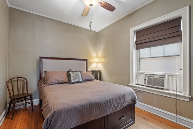 Special unit in intimate vintage building. The private entrance to this tier allows access to only three units. This serene condo has a beautiful wood burning fireplace with original tile work and a wood mantle. There is a new chimney with a new liner. The fireplace is flanked with original quaint wooden built-ins on either side. Hallway has some nice detailing with curved arches leading to dining room. The bedroom has an efficient and attractive wall of custom cabinetry and offers a dresser, closet and some open shelving. Galley kitchen boasts the charming original porcelain sink with attached metal cabinet and wood cabinets with casement latches for all your dish ware. Multicolored small tiles grace the floor of the charming bathroom and the bath itself is a deep, long porcelain tub. This unit is an oasis away from street noise and there is sun exposure from all four directions. There is a small outdoor area on the back staircase. A large caged storage unit is located in the basement as well as a very clean and uncluttered laundry room. Building has a 4 year old roof and a new boiler was installed in July 2021. Fridge replaced 3 months ago, Coin laundry on basement, in- unit IS allowed with HOA approval.Rentals allowed after 2 yrs. occupancy. Excellent maintenance on this unique building. Evanston surface lot across the street (lot 23) with a permit. Located in a walk to.... Metra, el train, Fountain Square, downtown restaurants and 6 blocks to Lake Michigan. A sweet haven for escape in the center of town.