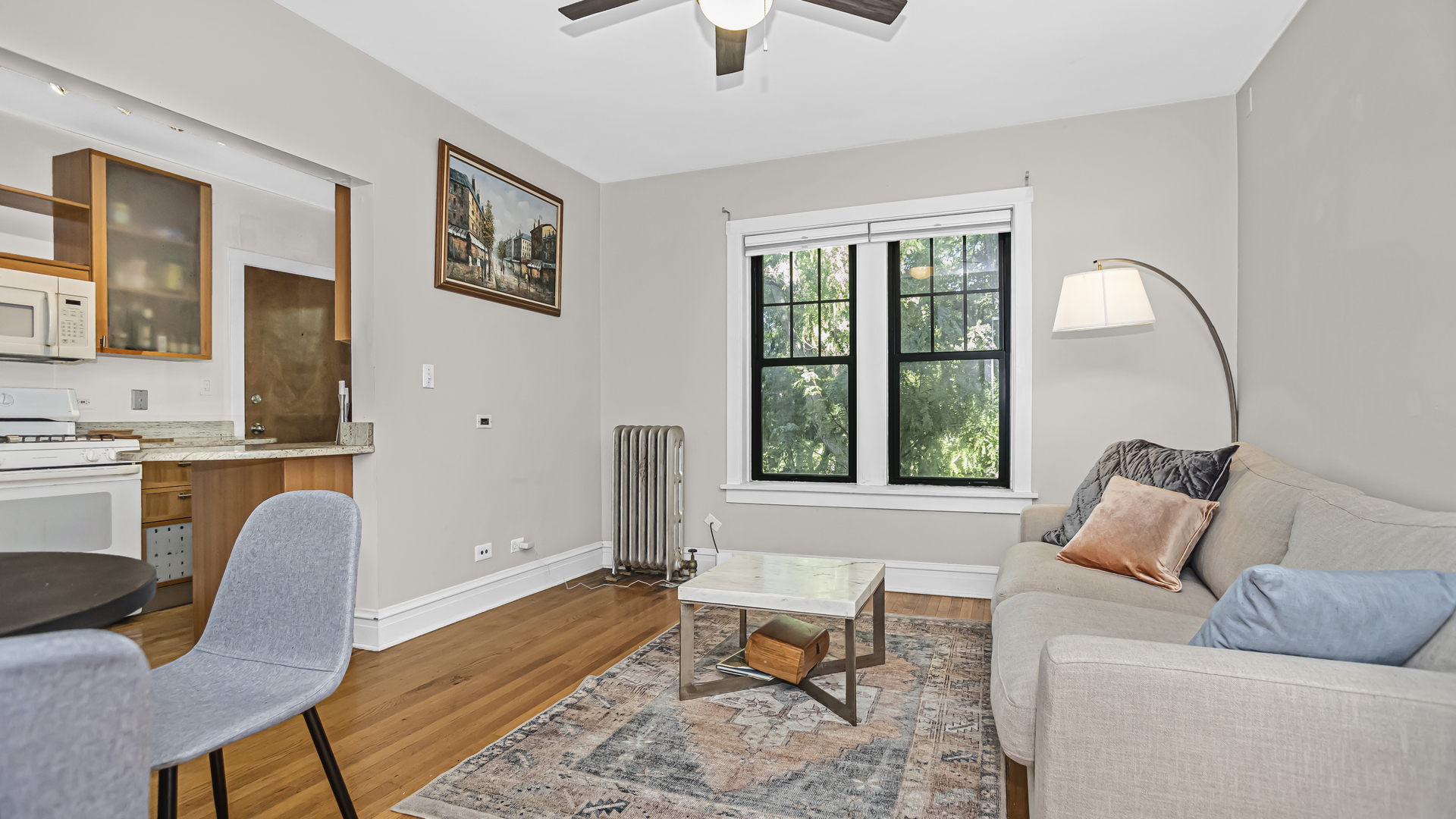 Top Floor condo in attractive courtyard building with lovely tree-top view of Clyde-Brummel Playground. As you enter, the foyer with roomy closet - nice size bath, and galley kitchen with Italian maple cabinets, window and counter seating make this layout easy to live in. There's bonus storage right downstairs. Additional highlights of this remarkable condo include hardwood floors throughout, in-unit laundry, and an abundance of closet space for all your storage needs. The building also offers a common outdoor area, perfect for enjoying the fresh air and soaking up the sunshine. Short distance to: Peckish Pig, Sweet Temptations, Cafe Coralie, North Shore Cider, and the red/purple/yellow CTA lines. FHA Approved. Tons of street parking and a permit city lot right across the street.