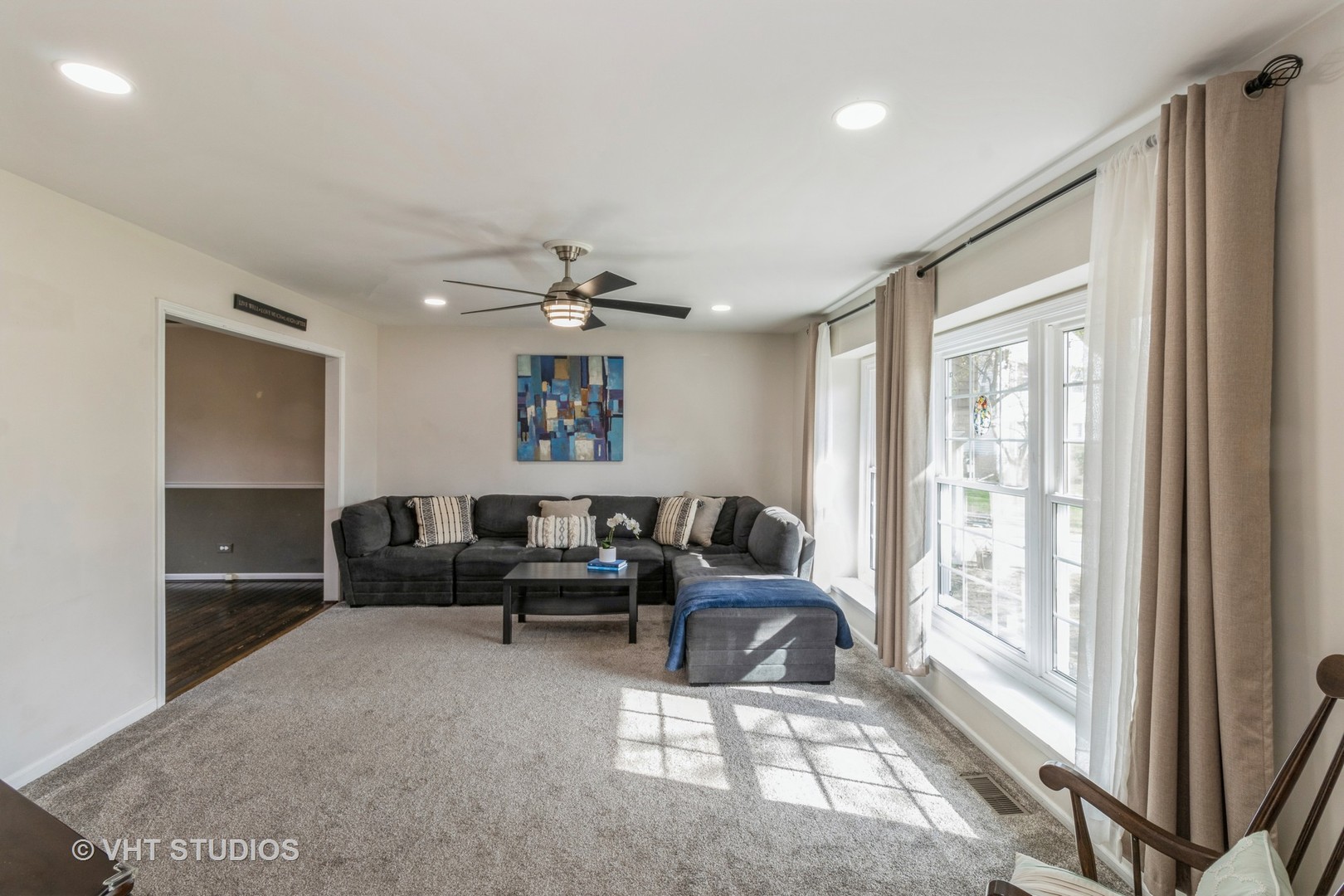 Welcome to your home in the heart of charm and community. Nestled on a street that boasts a haven of quaint homes within a well-established neighborhood, this home offers the perfect blend of comfort and convenience. Located in the sought-after Strathmore Grove community and within the highly rated Prairie Elementary, Twin Groves Middle School, and award-winning Stevenson High School District, this inviting 4-bedroom, 2.5-bath home features over 2,348 square feet of living space in a peaceful, tree-lined setting. As you step inside, you're welcomed by a bright and spacious living room that flows seamlessly into the formal dining area-ideal for both everyday living and entertaining. The kitchen, just off the dining room, offers ample cabinet and counter space, making meal prep a breeze. Adjacent to the kitchen, the large family room features a cozy wood-burning fireplace and luxury vinyl plank flooring (2023), with direct access to the spacious fenced backyard and paver patio (2023)-perfect for relaxing or hosting guests outdoors. Upstairs, you'll find four generously sized bedrooms, including a primary suite with a private bath and plush carpet (2022). A second full bathroom and convenient hallway storage complete the upper level. ADDITIONAL HIGHLIGHTS include: 2023 Roof (with limited lifetime warranty), 2023 Energy-efficient Sunrise double-pane windows (lower level), 2023 Aluminum window cladding throughout, 2022 Recessed lighting, ceiling fans, and updated fixtures on the main level, 2018 Furnace, water heater, and whole-home humidifier. UPDATED APPLIANCES & SMART FEATURES: 2024 Samsung refrigerator, 2024 LG washer, 2023 LG dishwasher, 2023 Garbage disposal, 2022 Google Nest thermostat, WiFi dimmers, smart lock, and a security system with cameras. Enjoy everything this location has to offer: steps from Oxford Park, near shopping, dining, entertainment, commuter train, and easy access to major highways. This well-cared-for home offers modern convenience in a timeless suburban setting. Schedule your private showing today and experience all it has to offer!
