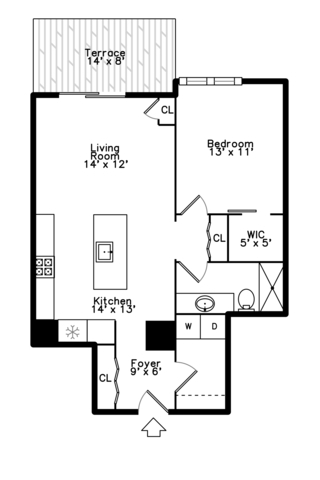 Enjoy sunset views from your over-sized terrace in this spacious 1 bedroom condo inside Evanston's premier Church Street Station. Freshly painted throughout with an open kitchen/living/dining room that leads to your 14'X9' terrace that serves as outdoor living space. The bedroom has brand new carpet and a walk-in closet, and the unit has an actual laundry room, with side by side washer and dryer and ample storage space. Building features a beautiful indoor pool, an exercise room, party room, door-person, library, bike rooms, huge storage cage, and an impressive landscaped outdoor terrace. Ideal Location--steps to trains (EL and Metra), shopping, restaurants, theater, lake, and everything downtown Evanston has to offer! Garage parking spot is included in the price. Come see your new home today!