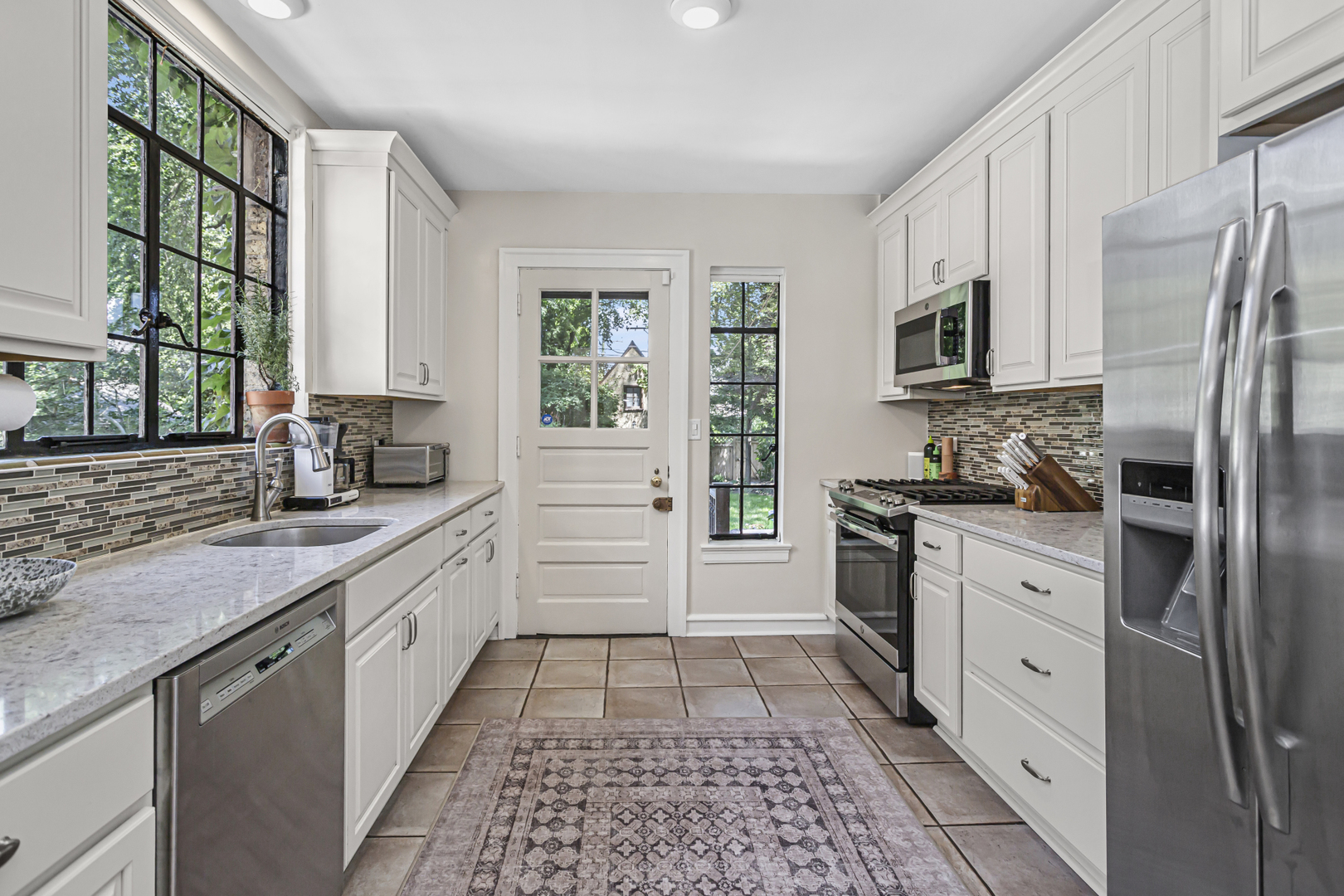 This meticulously maintained English style home welcomes you with its timeless story book charm and inviting atmosphere. As you enter you are greeted by stunning landscaping and a bright interior, highlighted by gleaming hardwood floors, and large charming windows that bathe the living spaces in natural light. The spacious formal dinning room leads to the perfect work from home office or library. The kitchen is updated complete with stainless steel appliances and a sunny breakfast nook with original corner built-ins! Upstairs you'll find a serene primary suite, featuring a luxurious en-suite bathroom. Plus 3 additional bedrooms, and another bathroom. In the basement you will find a full bath perfect for guests, with cozy heated floors and tons of storage space. The attic has a full set of stairs making the the 3rd floor easily to finish if desired or even more storage. The backyard offers a lovely patio, surrounded by lush greenery, and fabulous landscaping. There is also a bonus parking pad next to the 2-car garage. Steps away from Lake Michigan, Northwestern University, and Downtown Evanston. Please see the additional information tab for expansive list of improvements.