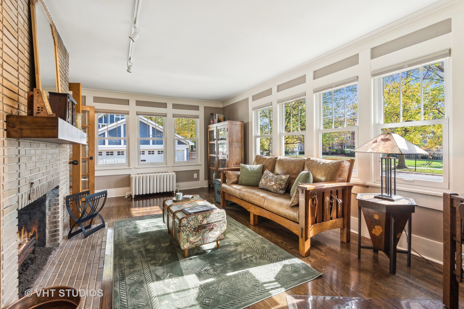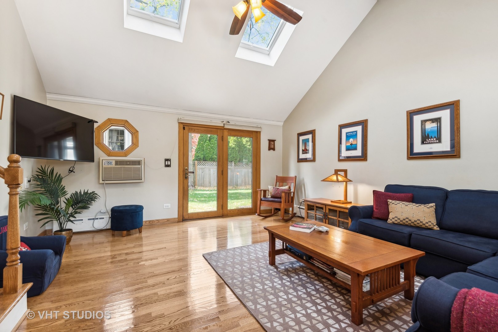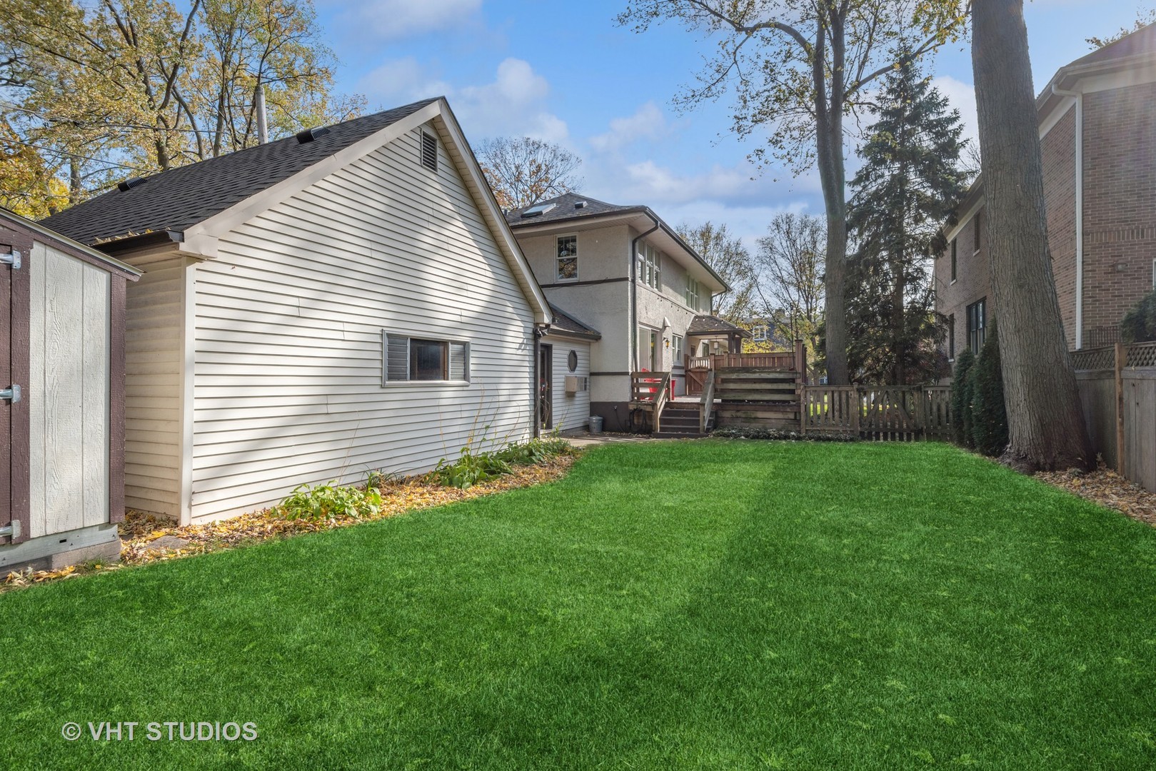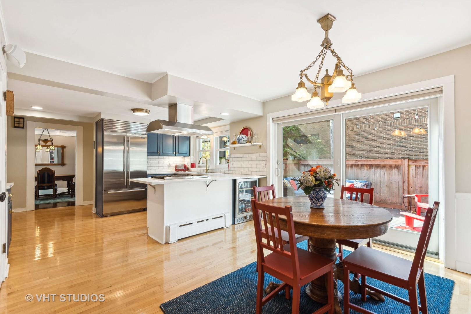 Charming Prairie-Style Home in Immaculate Condition! Discover this beautifully updated Prairie-style residence nestled on a picturesque, tree-lined street in NW Evanston, ready for you to move right in! The spacious eat-in kitchen boasts high-end features, including a Sub Zero refrigerator, Wolf range/oven, stainless steel appliances, wine fridge, quartz countertops, and ample pantry storage. Enjoy seamless indoor-outdoor living with sliding doors that lead to a generous deck, perfect for grilling and entertaining. The first floor also features a formal dining room, a cozy living room with a gas burning fireplace, and an expansive family room adorned with skylights and vaulted ceilings. You'll also find a convenient powder room and a laundry room, making everyday living effortless. Upstairs, the large primary suite includes a private bathroom and a walk-in closet. Two additional well-sized bedrooms share a second full bath, ensuring plenty of space for family or guests. The basement offers abundant storage, while the attached 2-car garage and lovely fenced yard enhance the home's appeal. Recent upgrades include a newer roof and skylights, range, beverage fridge, chimney box and gas logs, washing machine, garage opener, and recently painted deck! Conveniently located to Central Street's shops, restaurants, and Metra, this well-maintained home is the perfect place to embrace your new lifestyle. Don't miss out on this opportunity-love where you live!