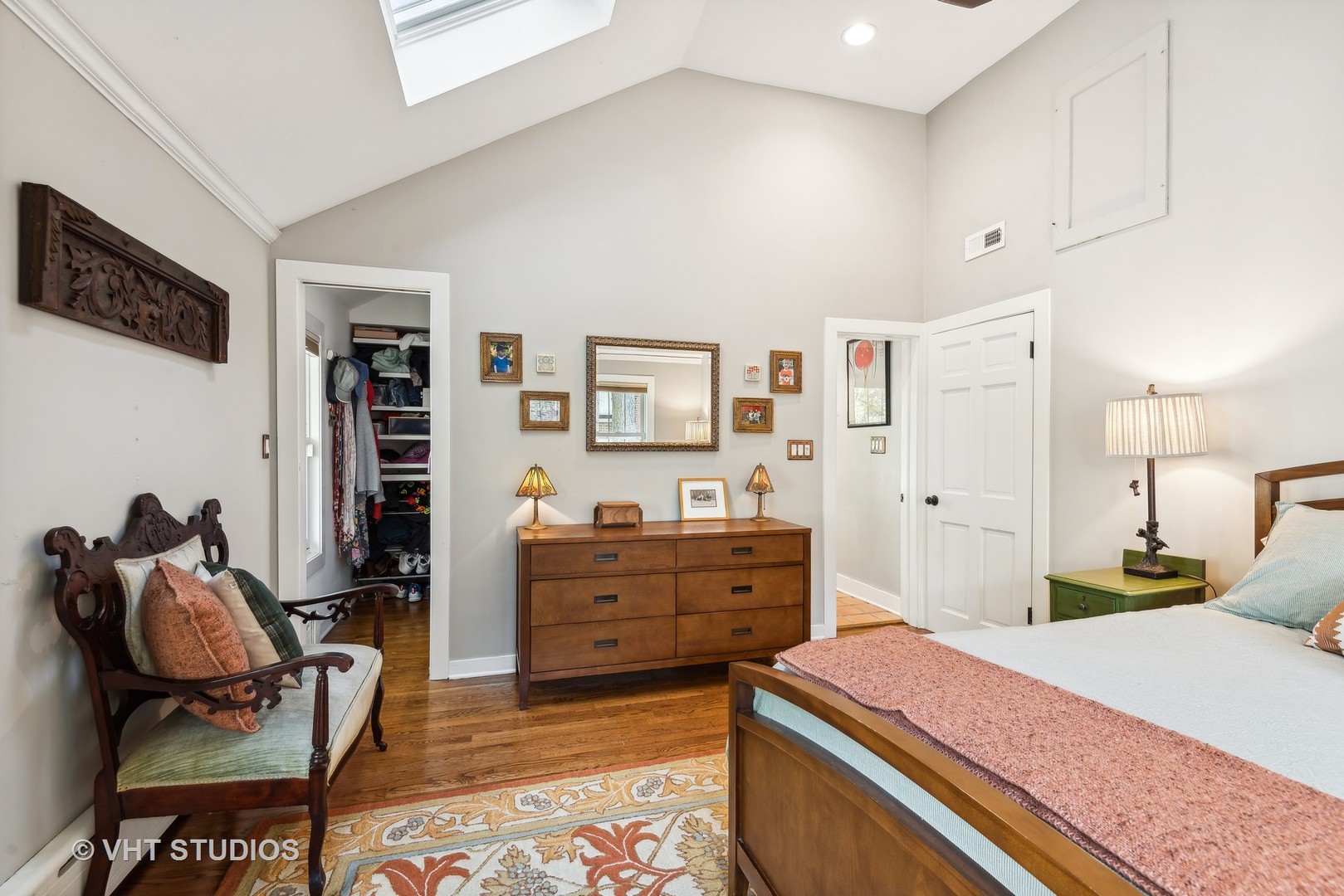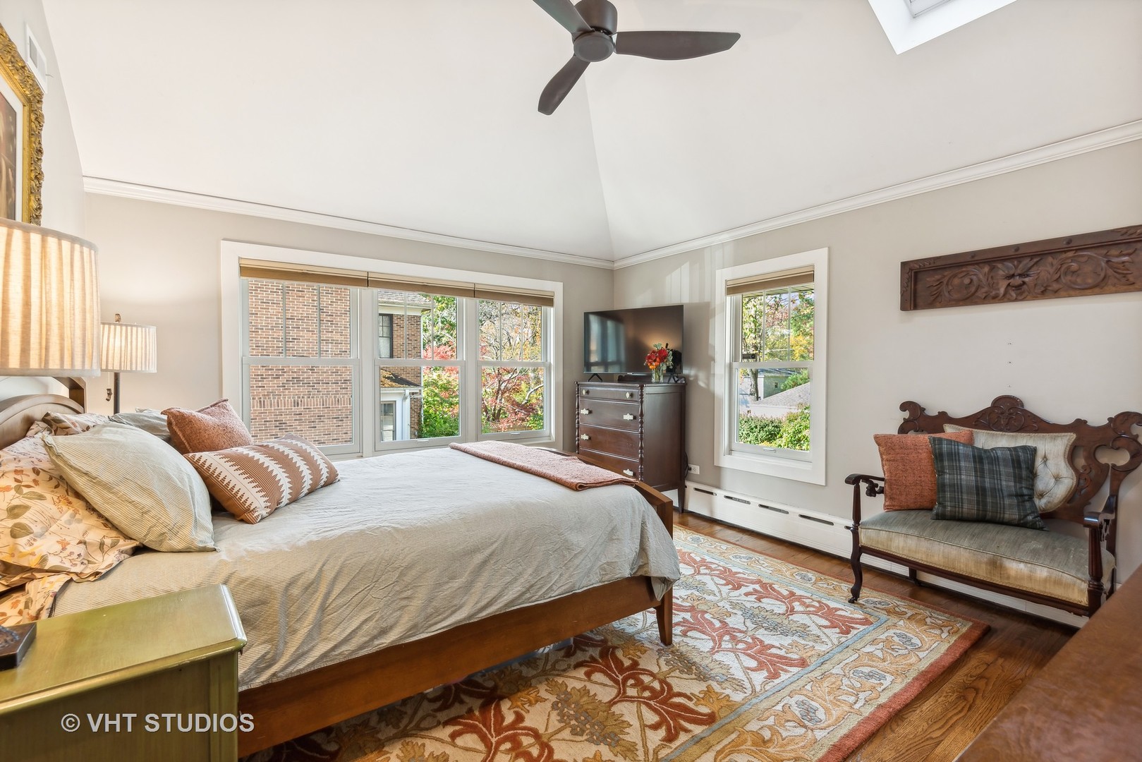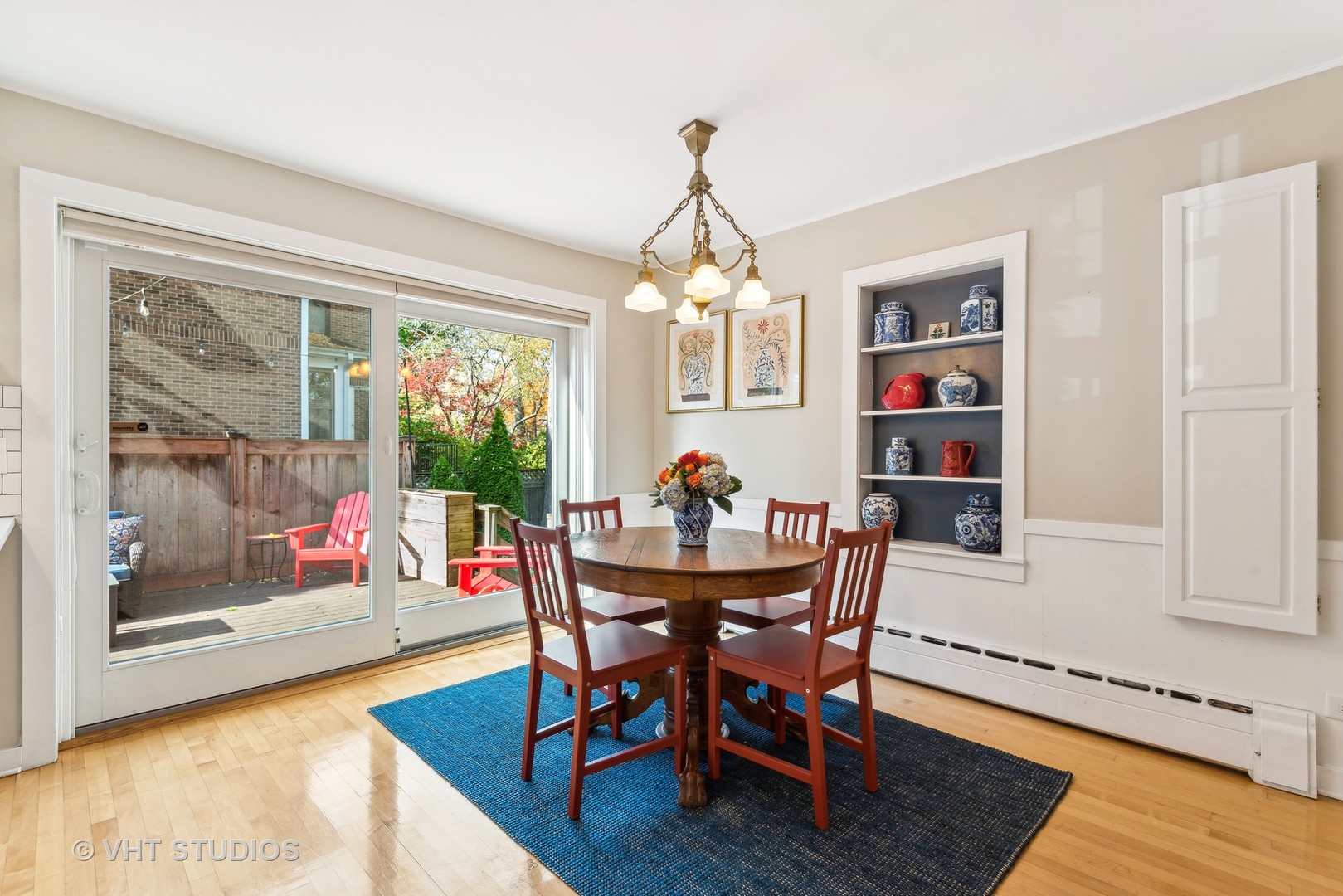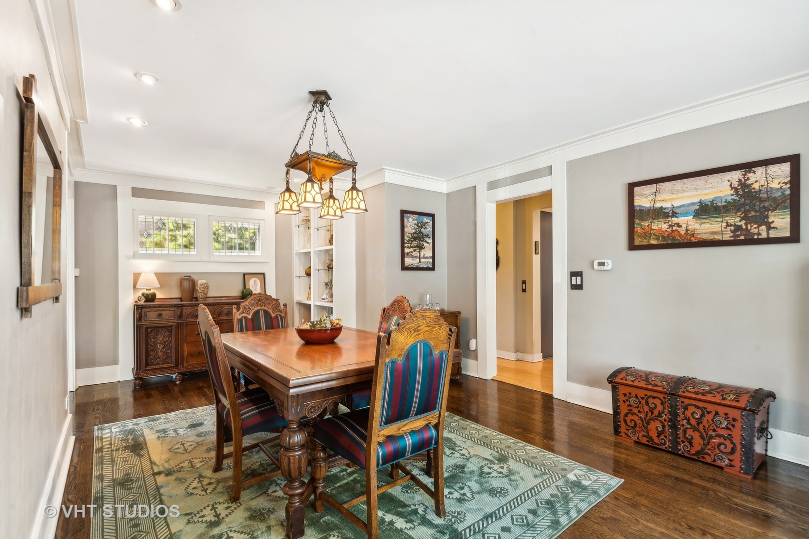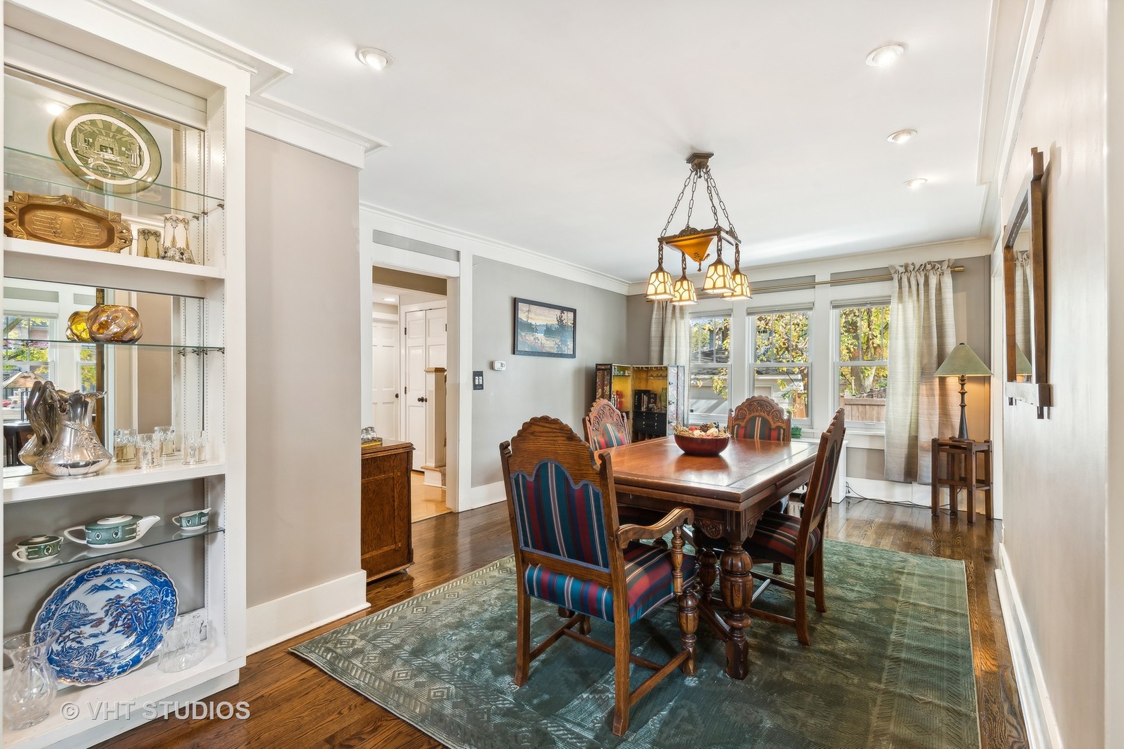 Charming Prairie-Style Home in Immaculate Condition! Discover this beautifully updated Prairie-style residence nestled on a picturesque, tree-lined street in NW Evanston, ready for you to move right in! The spacious eat-in kitchen boasts high-end features, including a Sub Zero refrigerator, Wolf range/oven, stainless steel appliances, wine fridge, quartz countertops, and ample pantry storage. Enjoy seamless indoor-outdoor living with sliding doors that lead to a generous deck, perfect for grilling and entertaining. The first floor also features a formal dining room, a cozy living room with a gas burning fireplace, and an expansive family room adorned with skylights and vaulted ceilings. You'll also find a convenient powder room and a laundry room, making everyday living effortless. Upstairs, the large primary suite includes a private bathroom and a walk-in closet. Two additional well-sized bedrooms share a second full bath, ensuring plenty of space for family or guests. The basement offers abundant storage, while the attached 2-car garage and lovely fenced yard enhance the home's appeal. Recent upgrades include a newer roof and skylights, range, beverage fridge, chimney box and gas logs, washing machine, garage opener, and recently painted deck! Conveniently located to Central Street's shops, restaurants, and Metra, this well-maintained home is the perfect place to embrace your new lifestyle. Don't miss out on this opportunity-love where you live!
