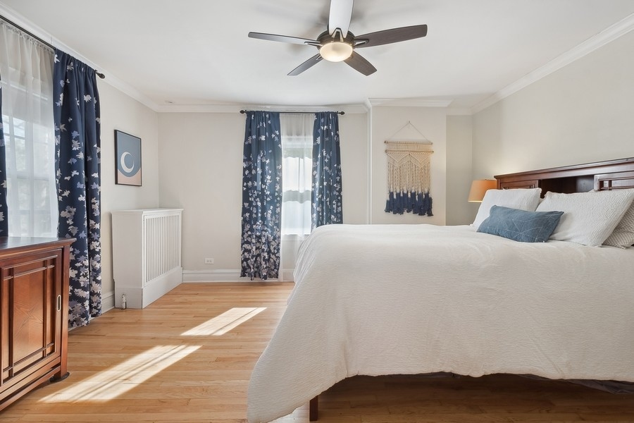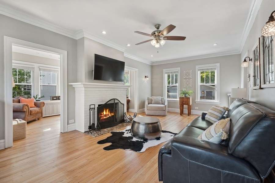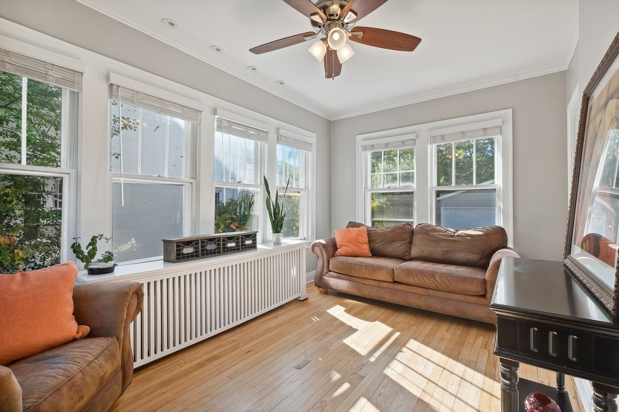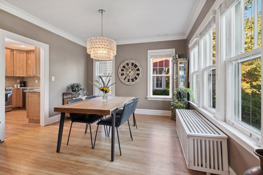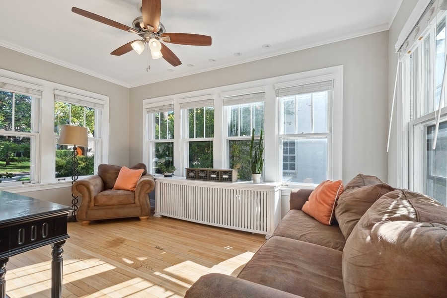 Welcome to this terrific center-entry Colonial located in desirable northwest Evanston! This 3 bedroom, 2.1 bath home offers loads of space both inside and out. Beautiful architectural details throughout include hardwood floors, beautiful moldings, terrific floor plan with gracious rooms and great circular flow perfect for easy living. The spacious Living Room is centered on a lovely wood-burning fireplace and opens to a cozy Sunroom/Family Room flooded with natural light. Entertain with ease in the large formal Dining Room-sure to be the gathering spot for many celebrations. Thoughtfully designed, the Kitchen boasts granite countertops, S/S appliances and a breakfast bar complete with wine refrigerator and ample counter space. All overlooks the professionally landscaped gardens and opens to a beautiful deck and down to a patio. The large Primary suite includes a beautiful new bathroom with double vanities and walk-in closet. Two additional bedrooms, a hall bath and linen closet complete the 2nd floor. Upstairs to the 3rd floor is a terrific tree-top retreat which currently is used as an exercise room and home office but flexible to be an additional bedroom. The spacious, unfinished basement currently provides tons of storage and great laundry space. It can easily be finished with endless possibilities such as a recreation room, an additional bedroom & bathroom, a workshop, an exercise room, or so much more. Sitting on a large and fully fenced yard, including a 2-car garage with great storage, walking distance to Willard School, Central Street shops, restaurants and more makes this beautiful house the perfect home! MULTIPLE OFFERS RECEIVED- HIGHEST & BEST OFFERS DUE MONDAY, MARCH 25TH AT NOON.