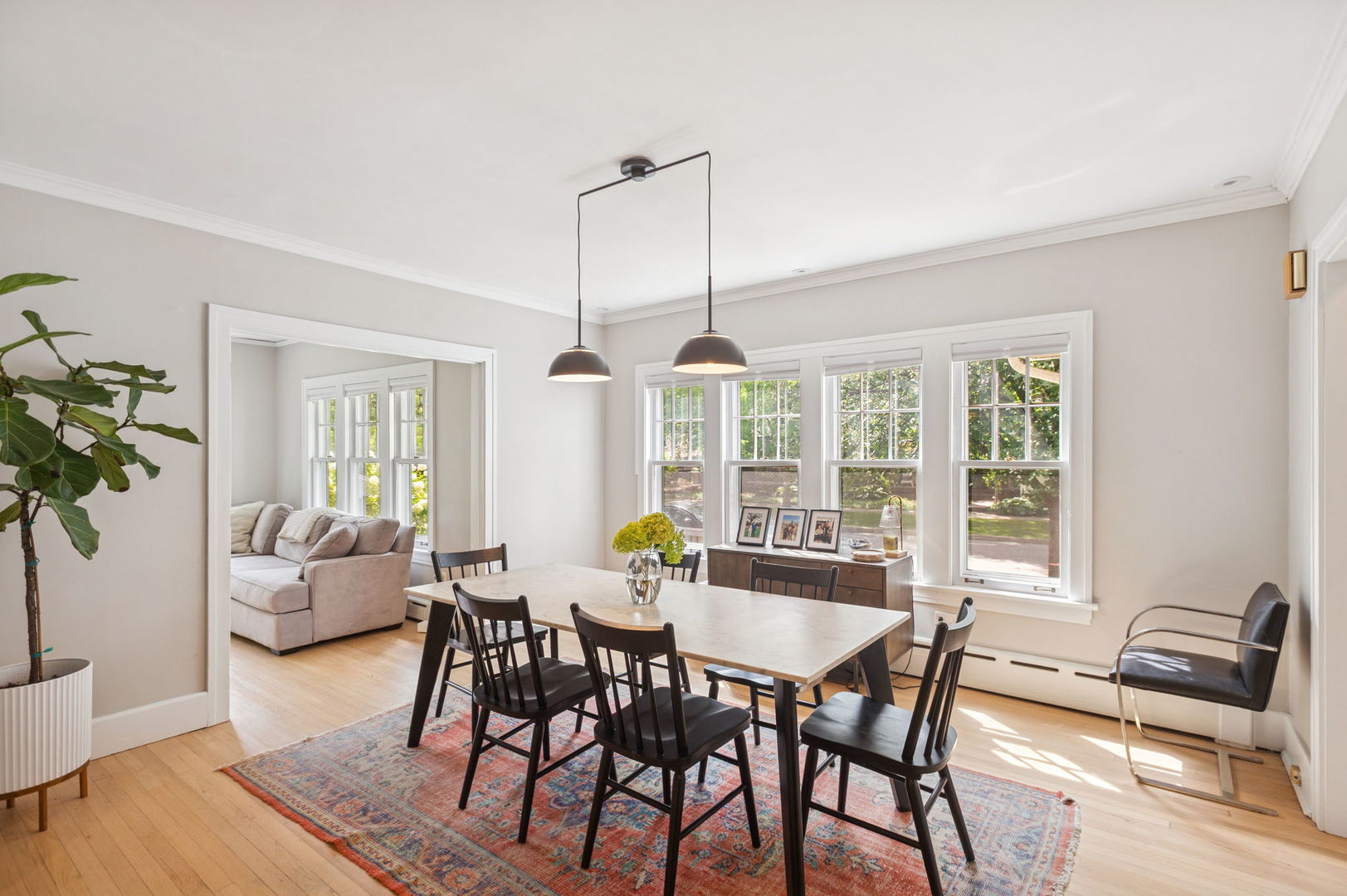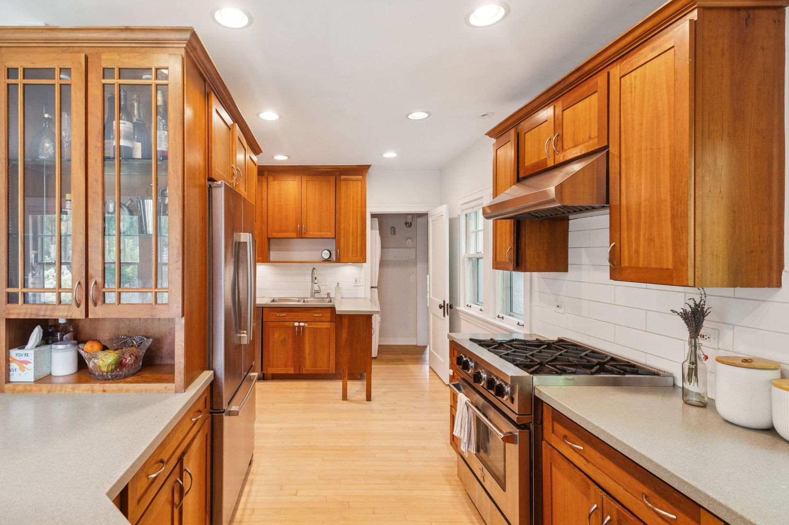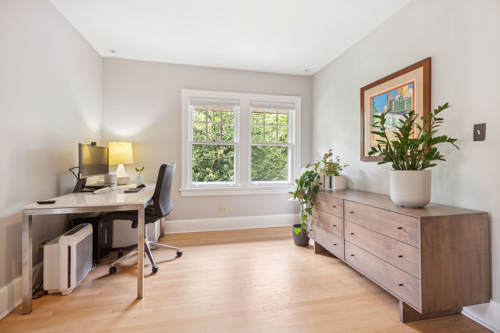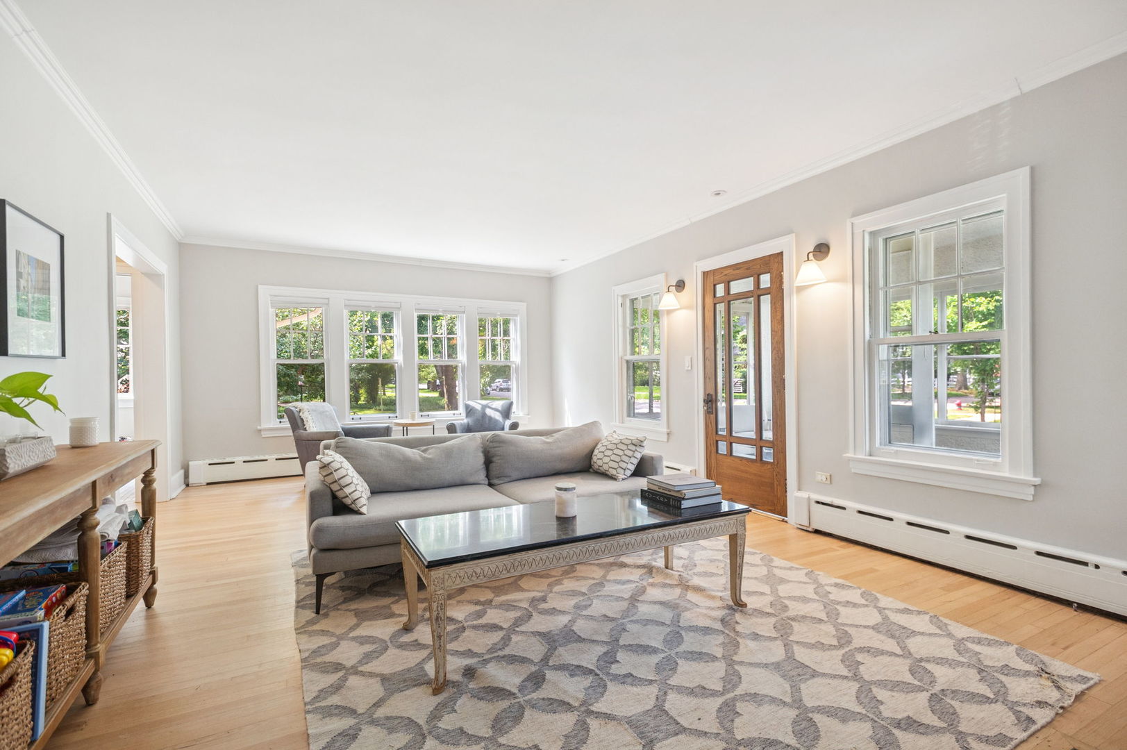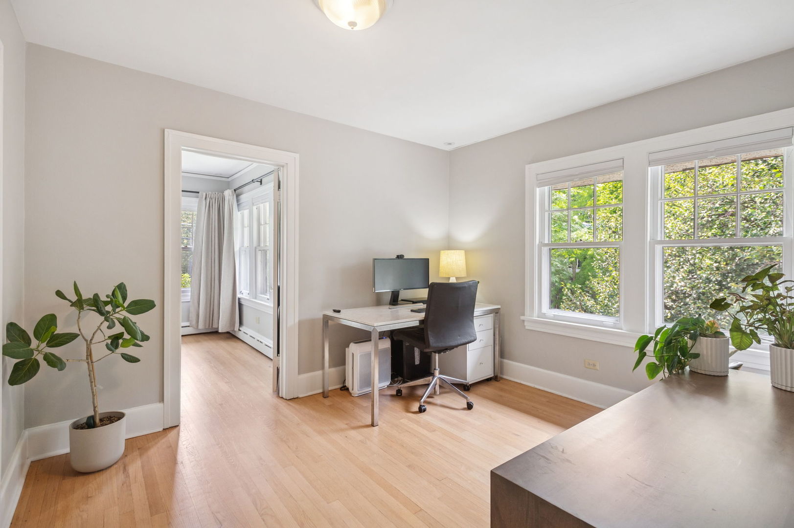 Beautiful home situated on a corner lot in NW Evanston allowing streaming sunlight from all sides! Large living room with oversized windows, fireplace and adjacent screened porch for enjoyment much of the year. Updated kitchen with new appliances (2017-18), breakfast bar and views of back yard from versatile dining room/family room/breakfast room space. Second floor with 3 bedrooms plus a tandem bedroom. Large second floor bathroom renovated in 2017. Stairs to unfinished 3rd floor with endless potential! FInished basement includes: waterproofing, recreation room, large bathroom with steam shower. Lovely yard with patio, perennial landscaping and newer garage (2017). New roof (2017), new triple track storms and screens (2020). Easy walk to Central Street shops, Metra, parks and more!