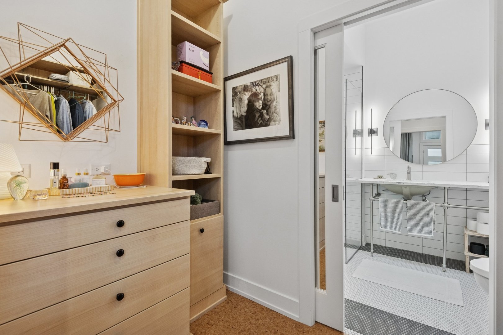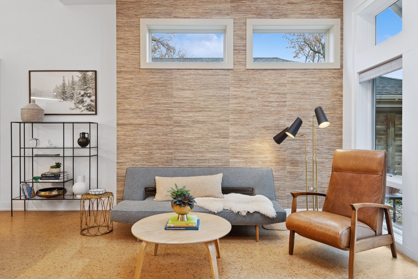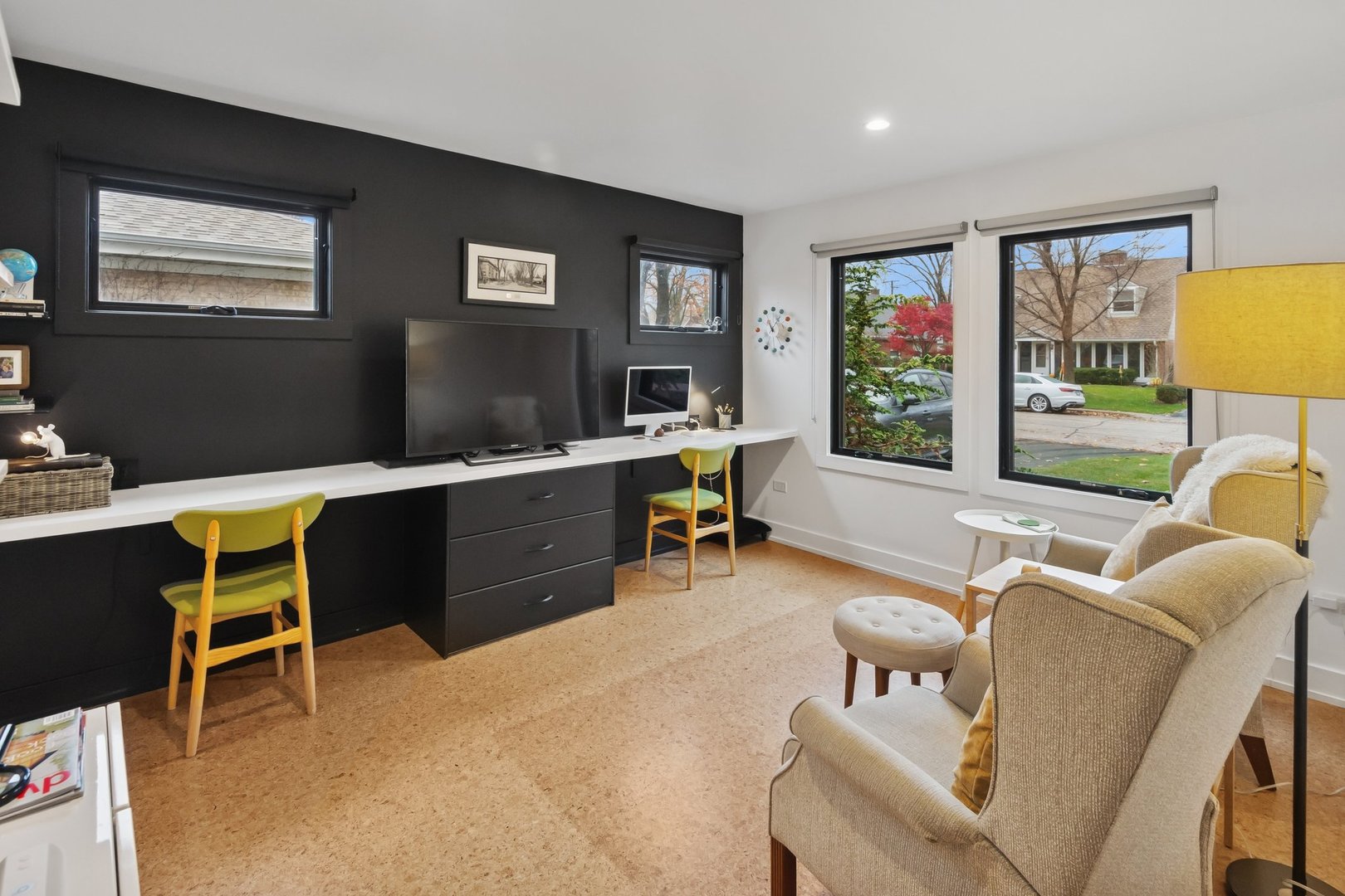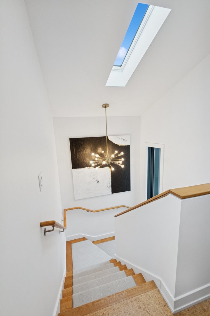 3310 Hayes Street has been completely reimagined by a modernist architectural firm with a full renovation in 2020, while retaining its Midcentury style. Warm cork floors that flow throughout, windows and skylights placed to maximize daylight set the tone for this thoughtfully designed home. Through the well lit foyer the house opens up into a two story vaulted great room. The all new kitchen with Bosch appliances, an induction cooktop, and beautiful recycled glass countertops is anchored by a 13ft island. The spacious dining room flows into the living room with another wall of windows overlooking the professionally landscaped backyard. Toward the back of the home is the primary bedroom which features a bright and roomy ensuite bathroom with heated floors and a custom closet. The second bedroom off the kitchen has its own ensuite bathroom and large closet. The sizable laundry room, conveniently located on the first floor, features a large fireclay utility sink and stackable washer and dryer. Up the skylight light staircase off the kitchen, is the third bedroom, along with an additional loft space perfect for a home office or a future third bathroom. The one car attached garage located in the back of the home off the newly paved alley has a BMW level 2 electric car charging station installed. There is additional parking in the front driveway. Not only does this home honor the modern style while making use of the concepts of universal design, it also incorporates up to date energy efficient heating and cooling systems that provide cost effective and eco-friendly living.