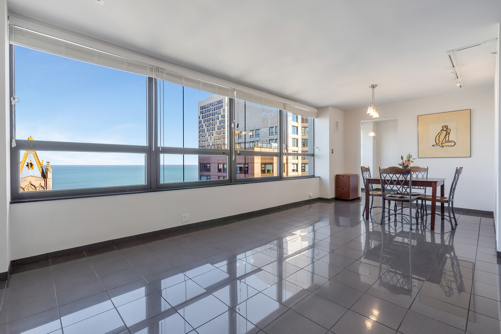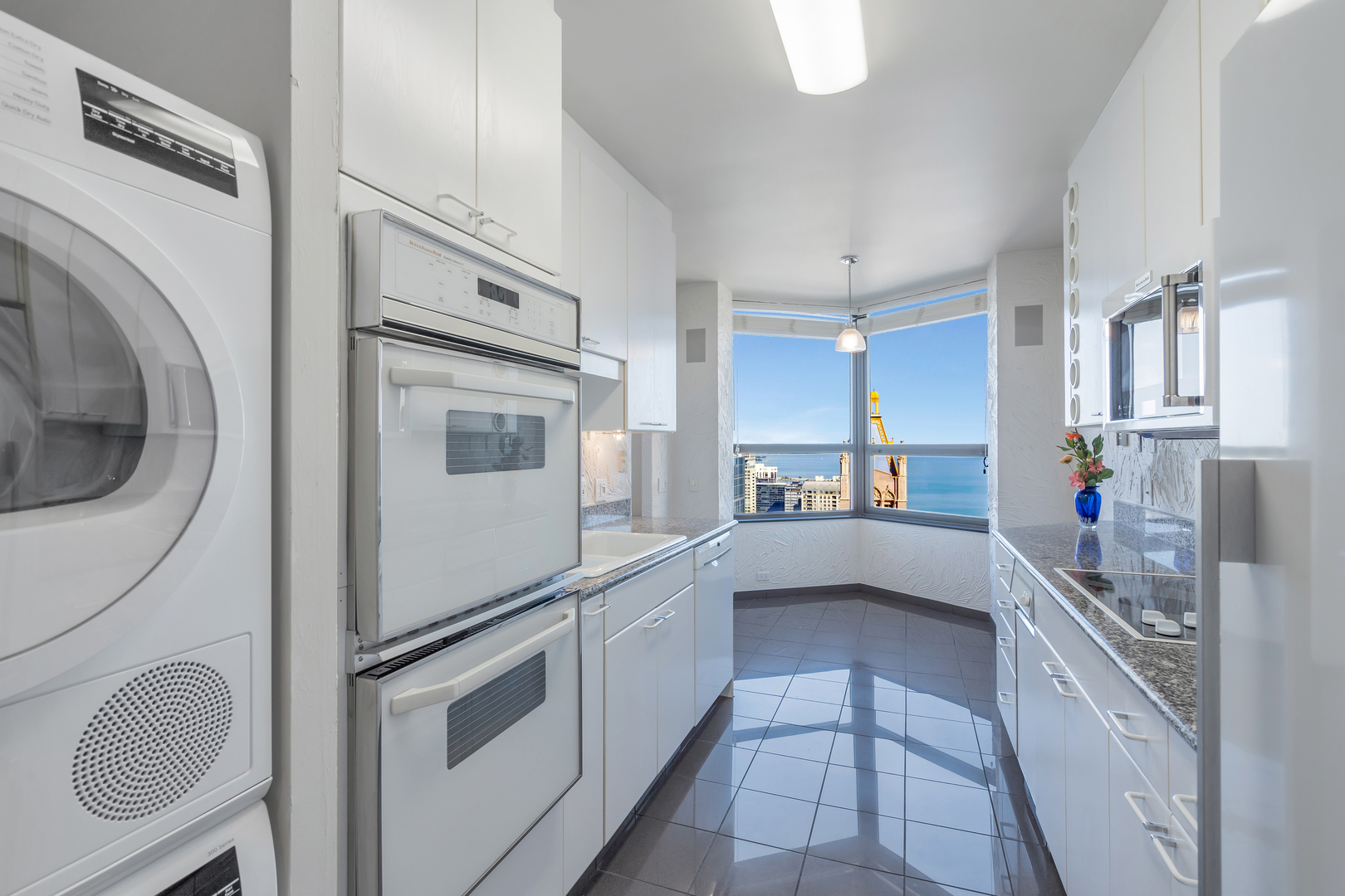 This is a nicely renovated/upgraded high floor unit with a breathtaking panoramic view from all windows) of both the lake and the city in the historic district of Streeterville. The unit is pretty roomy including living/dining room, master bedroom, 4 closets, 1.5 bathrooms, technical closet, a nicely developed with a built-in furniture home office and a foye. Major upgrades included high-end branded kitchen equipment such as new refrigerator Fisher & Paykel, KitchenAid microwave, Bosh washer & dryer as well as the furnace equipment. The entire plumbing work is redone. Additional closets are developed, new blinds installed, new bedroom carpet, porcelain flooring renovated, the kitchen window glass replaced, recently painted. The storage is equipped with shelves. The optional 1st floor exclusive parking space across from the elevators, may be purchased separately. The building's both common place interior and exterior underwent major renovations in 2023 and are ongoing. Engineer on site 24/7. HOA is debt free, no legal issues. Excellent infrastructure around (restaurants, coffee shops, grocery/post office/banks/Northwestern Memorial Hospital & other healthcare providers, Lake Michigan, Lake bike/jogging/walking trails, Navy Pier, Museums, public transportation, walking paradise, others).
