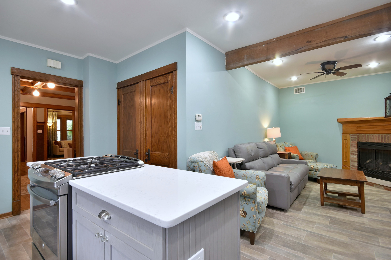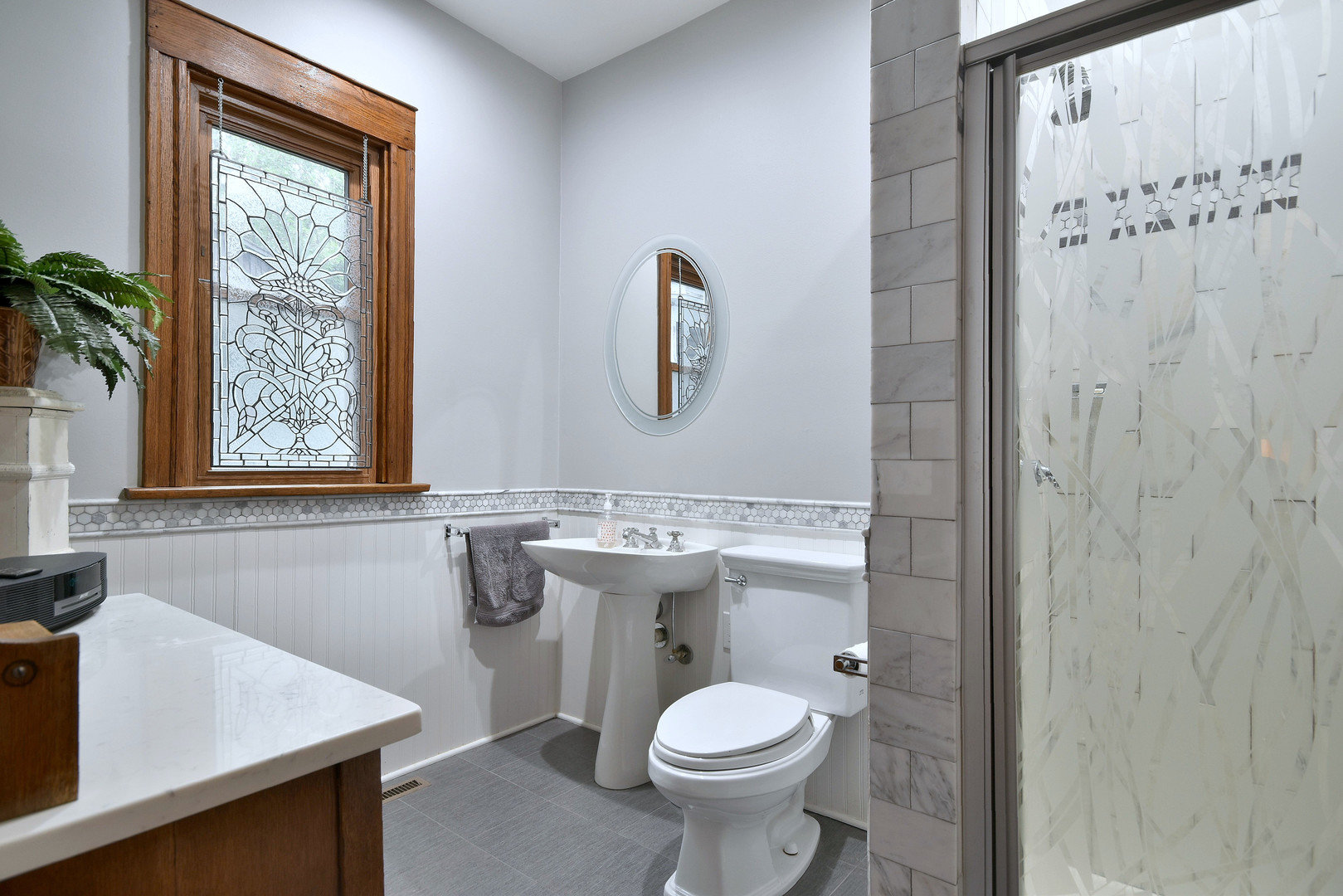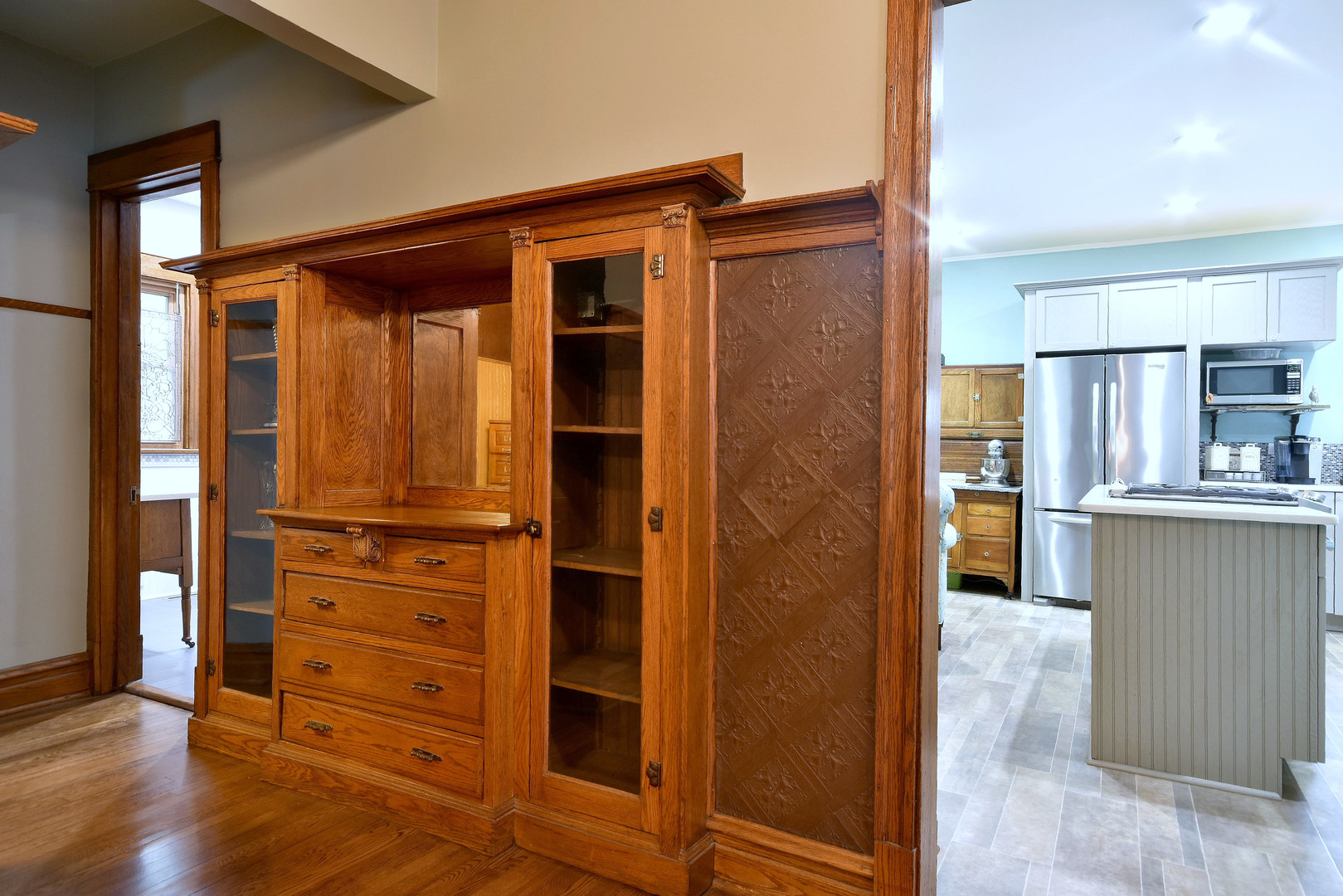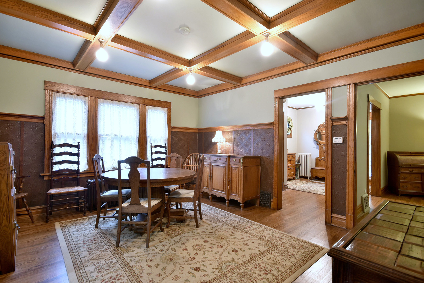 Oversized vintage craftsman style house with the perfect combination of vintage charm and modern amenities. Original oak woodwork, beamed ceiling, leatherette wall covering. Large updated kitchen with an island and family room. A remodeled full bathroom on every level with heated floors. Three bedrooms on the second floor, one on the first and one in the basement. This home shows pride in ownership in every detail, it is being offered for sale by the third owners. Highest and Best Offer due by Wednesday 1/31