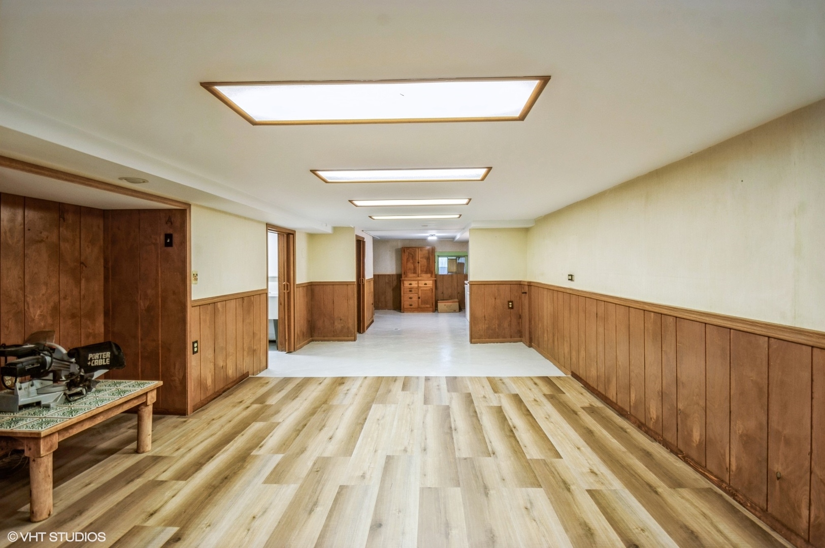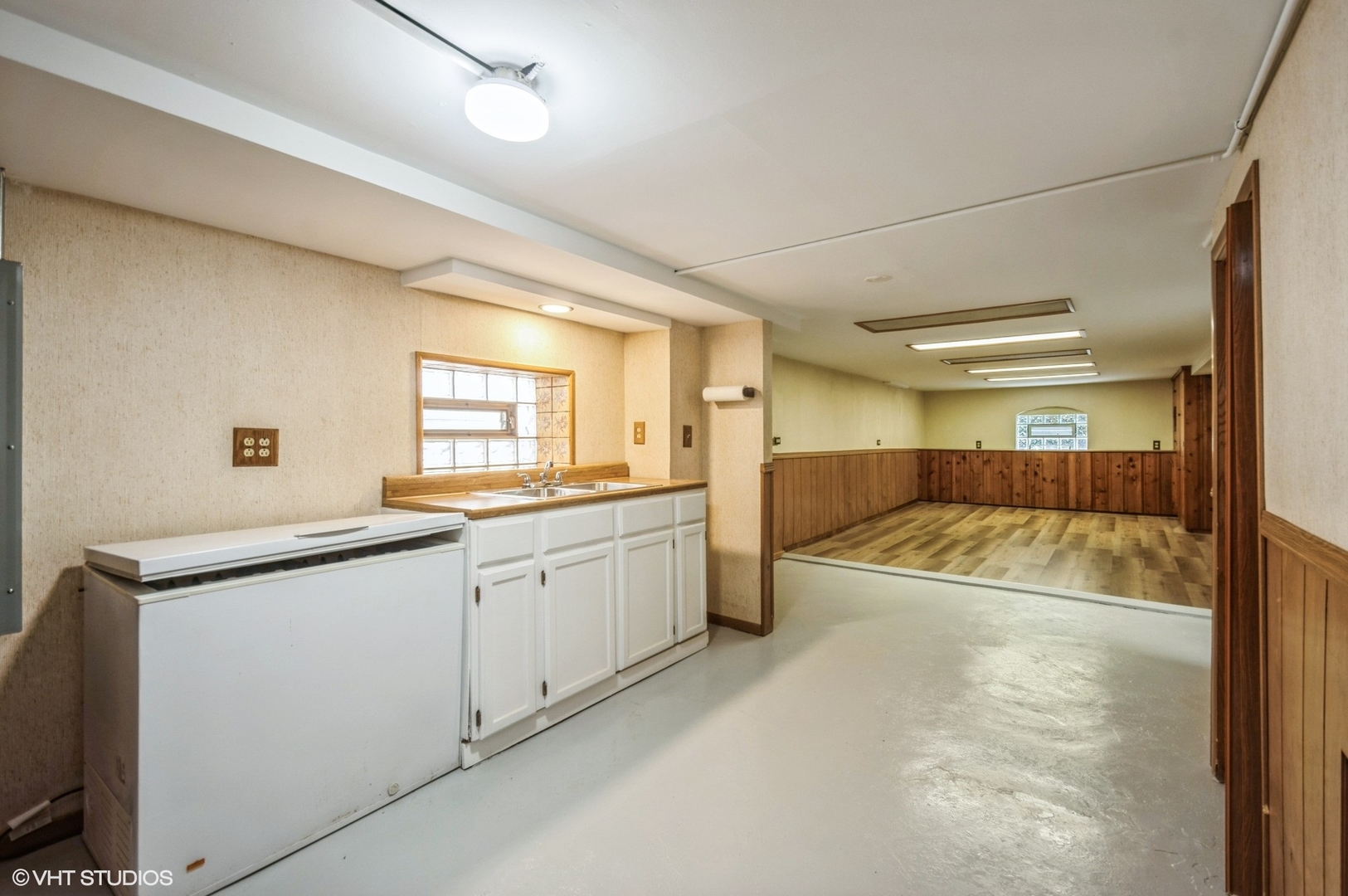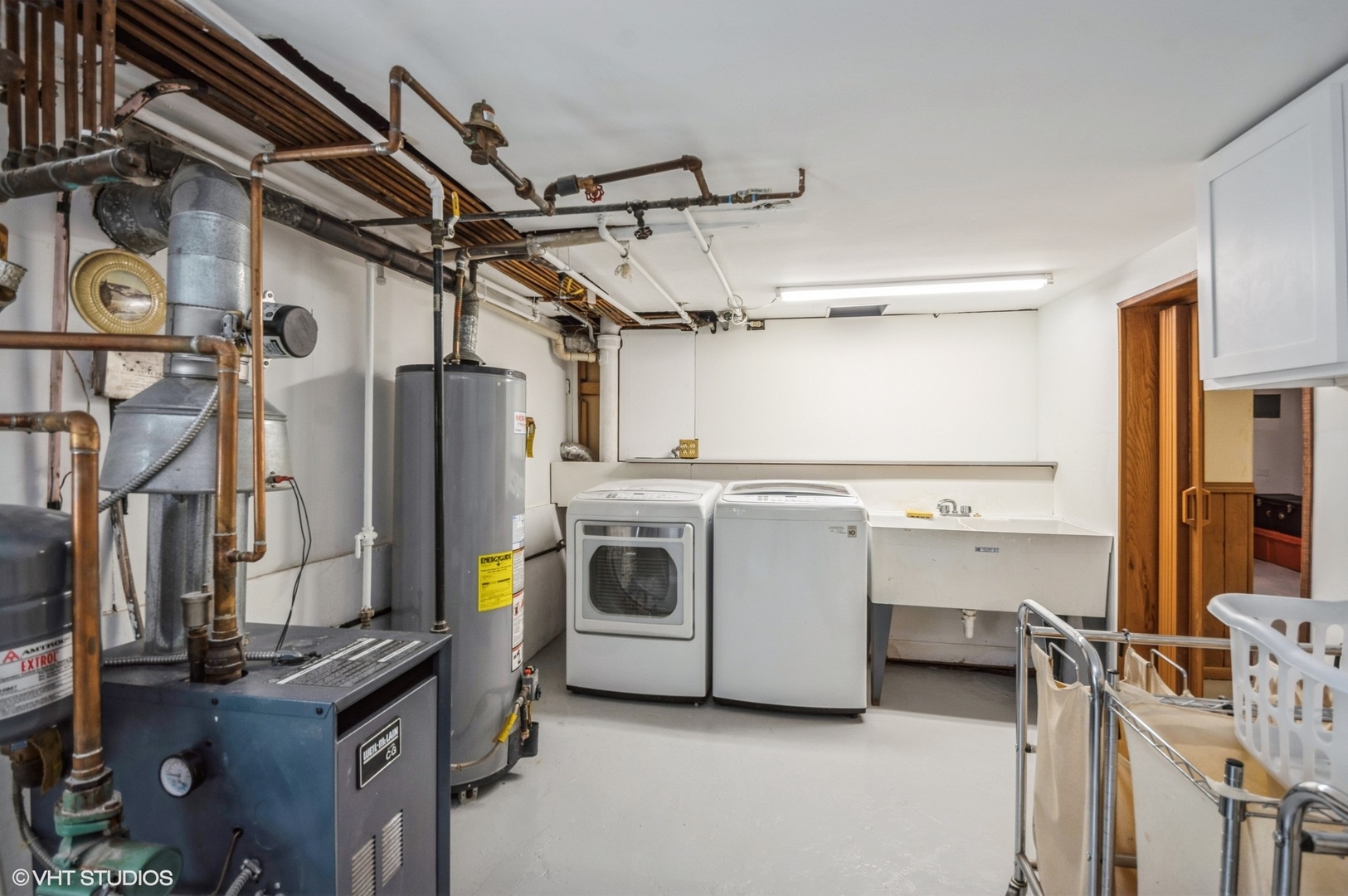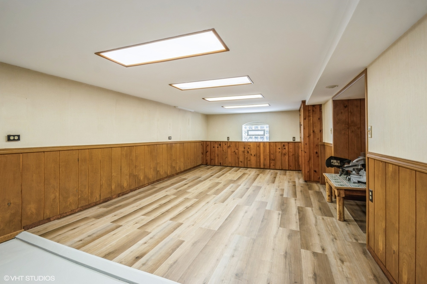 Portage Park Classic Chicago brick bungalow. 1 block to beautiful Dunham Park. Original natural woodwork and hardwood floors on main floor - living room, formal dining room, 2 bedrooms, full bath. Updated kitchen with wood cabinets, stainless appliances: 3 yr new refrigerator, newer microwave, gas stove, Bosch dishwasher, & ceramic tile backsplash. Light-filled 3 season room. 2nd floor features a large bedroom, half bath, open area with lots of built-in drawers and storage. Hot water baseboard heat. 3 AC units included. Updated circuit breaker electric panel. Rec room in basement with new floor, full bath, work room,(workbench stays) laundry/utility room. Beautifully landscaped yard with privacy fence. (Wooden fence on north side is brand new) 2 car garage with side patio. Nearby Dunham Park offers baseball diamonds, playground, park field house, activities, and tennis courts. Home has been well-cared for by long-time owners, but being sold in 'As Is' condition.