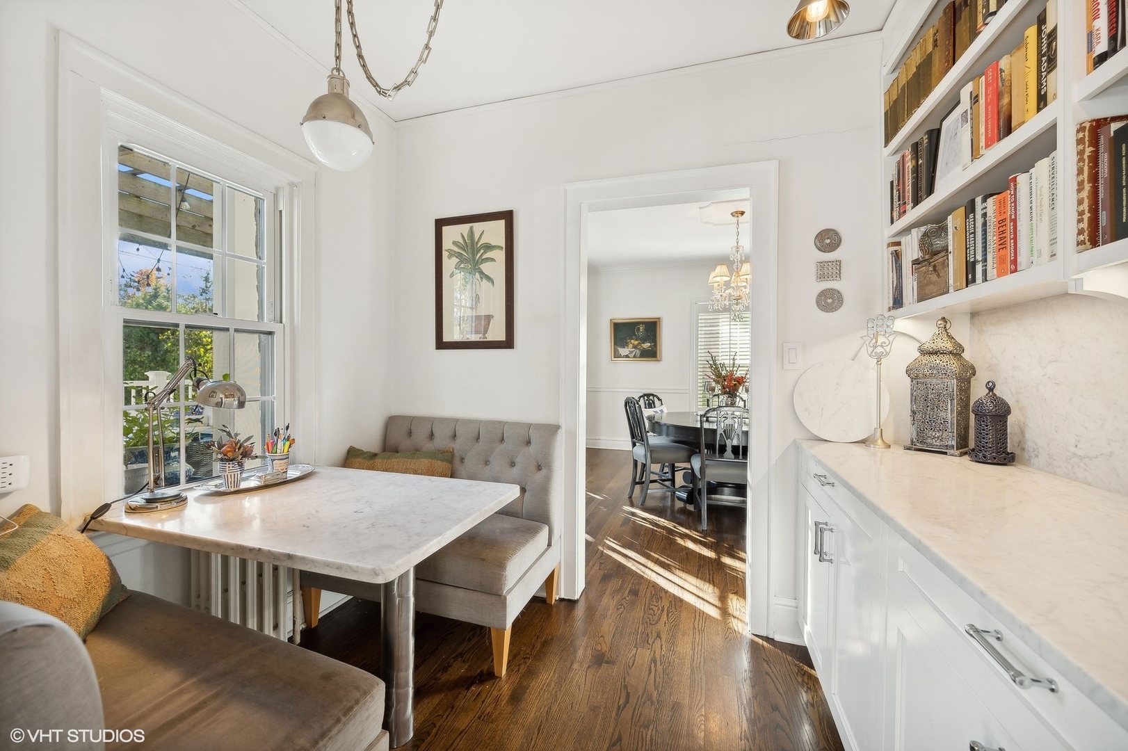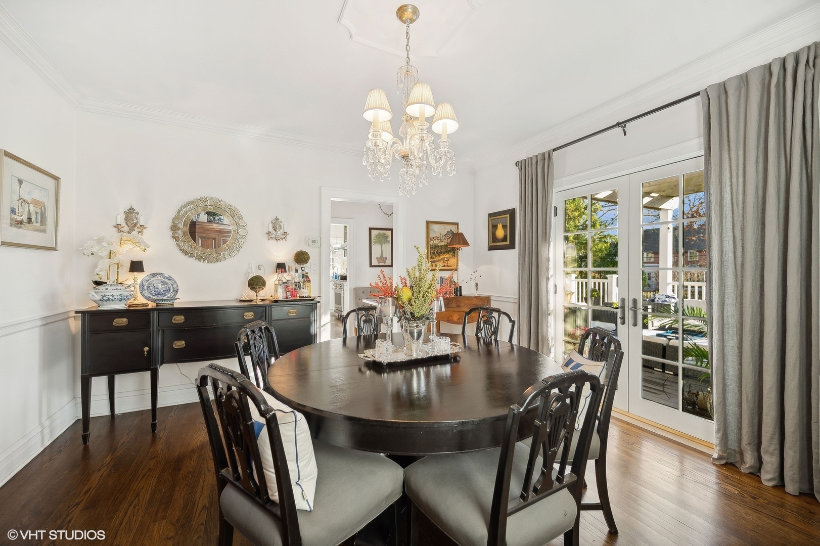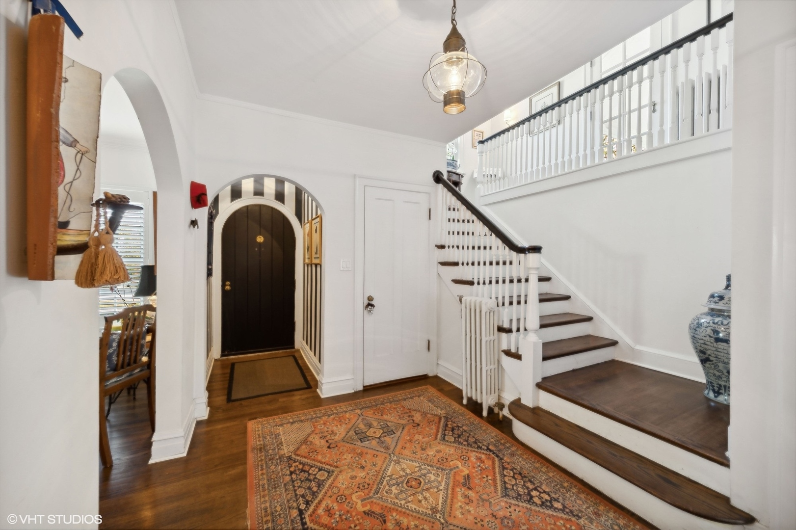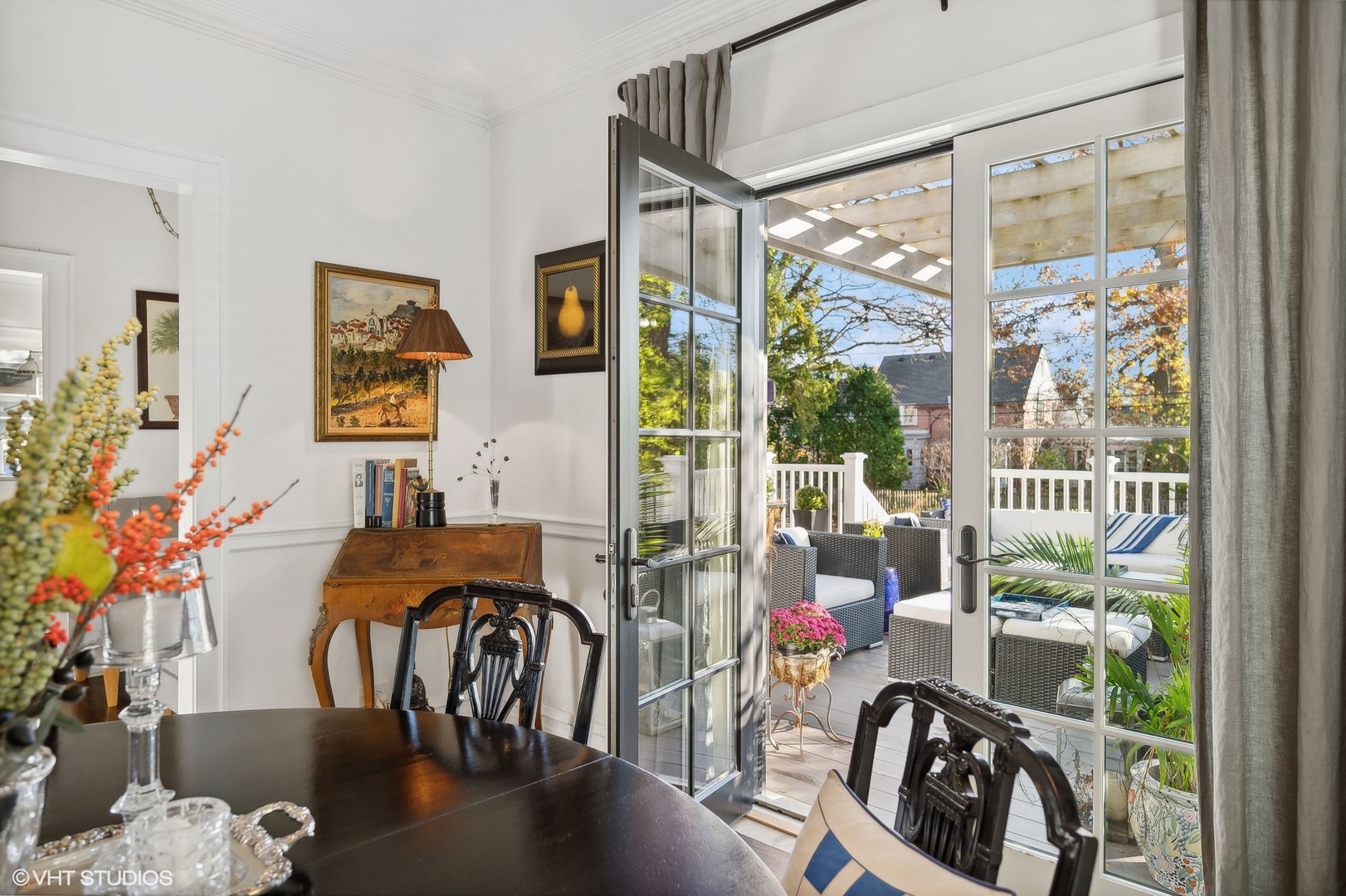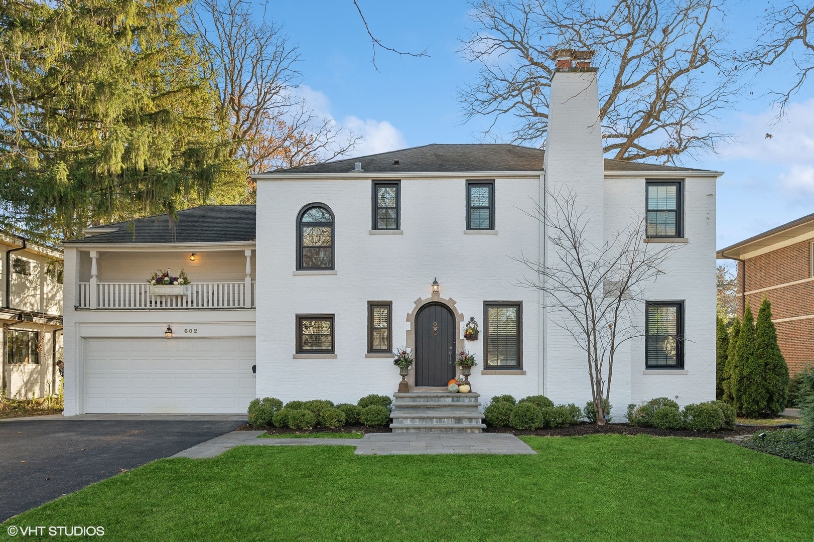 A lovely brick home, unique in its charm and elegance. Step inside to a stunning entryway foyer, the very heart of the home, which brings in natural light from all directions. Gorgeous hardwood flooring and rounded archways beckon you into the living spaces. The formal living room, complete with a classic stone fireplace and built-ins offer both serenity and a perfect modern workspace. A separate dining room is adorned with French doors that open onto an expansive back deck. This space seamlessly connects to a quaint breakfast nook and a bright, updated kitchen, featuring stone counters and high-end stainless appliances. The kitchen opens to the deck and a lush, landscaped backyard as well. On the main level, you'll discover a convenient powder room and a mud area that leads to the basement and an attached two-car garage. Ascend to the second floor, where four large bedrooms and two fully updated baths encircle a stunning landing and a picturesque front balcony. The full basement has been partially finished, offering a powder room, a wet bar, and a rec room, along with a laundry area and excellent storage. Nestled in an ideal location, this home is just steps away from Downtown Glencoe, the Old Chicago Botanic Gardens, Lake Michigan, transportation, recreation, and schools.