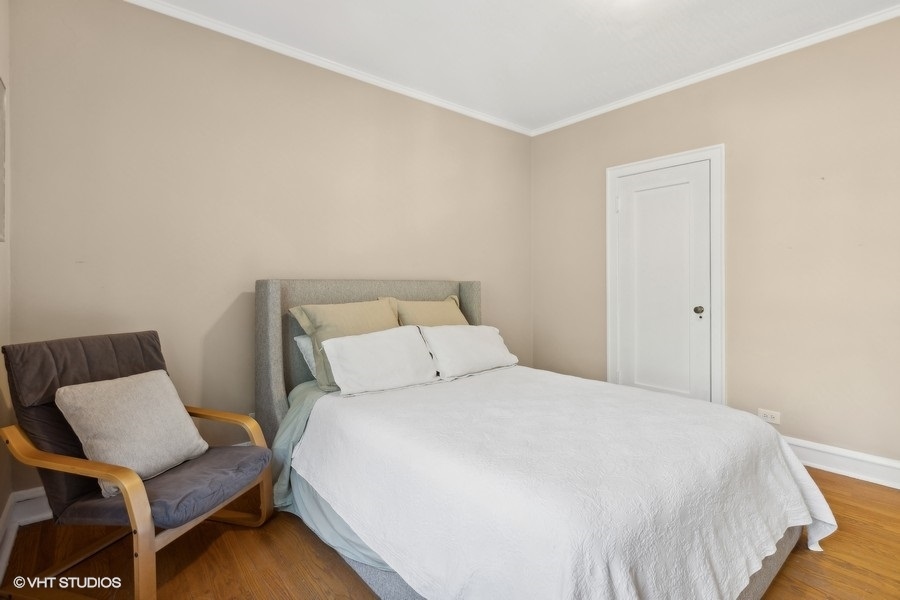 Charming and sunny 3 bedroom /2 bath corner residence in the elegant Rookwood Gardens, which is on the National Register of Historic Places. Located on beautiful tree-lined Noyes St, this gem of an abode features a spacious floor plan with 9 foot ceilings and hardwood floors throughout. The foyer leads to a bright and open living room where you can gaze out on to the treetops or pull some reading material from the built-in book cases. The adjacent formal dining room allows for dinner parties or additional living or work space. A butler's pantry offers space for a coffee station or bar area. The white kitchen has ample storage, granite countertops, & stainless steel appliances. For Art Deco lovers, the bathrooms showcase original tile with new vanities. Excellent closet space throughout. The building has a verdant English garden for common outdoor space, free laundry in the basement, storage, and on site custodian. Pets welcome! Enjoy the multi-faceted offerings of Evanston from this superb location in very close proximity to Northwestern University, Lake Michigan, Lighthouse Beach, Cultural Arts Center, trains, and downtown Evanston. Property tax, heat, internet, cable, water, storage and laundry are included in the monthly assessments. Option to purchase with Room and Board furnishings for easy move-in. A real beauty!