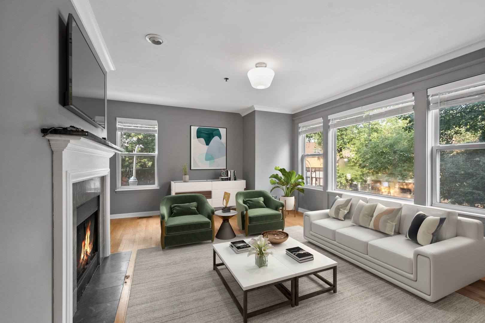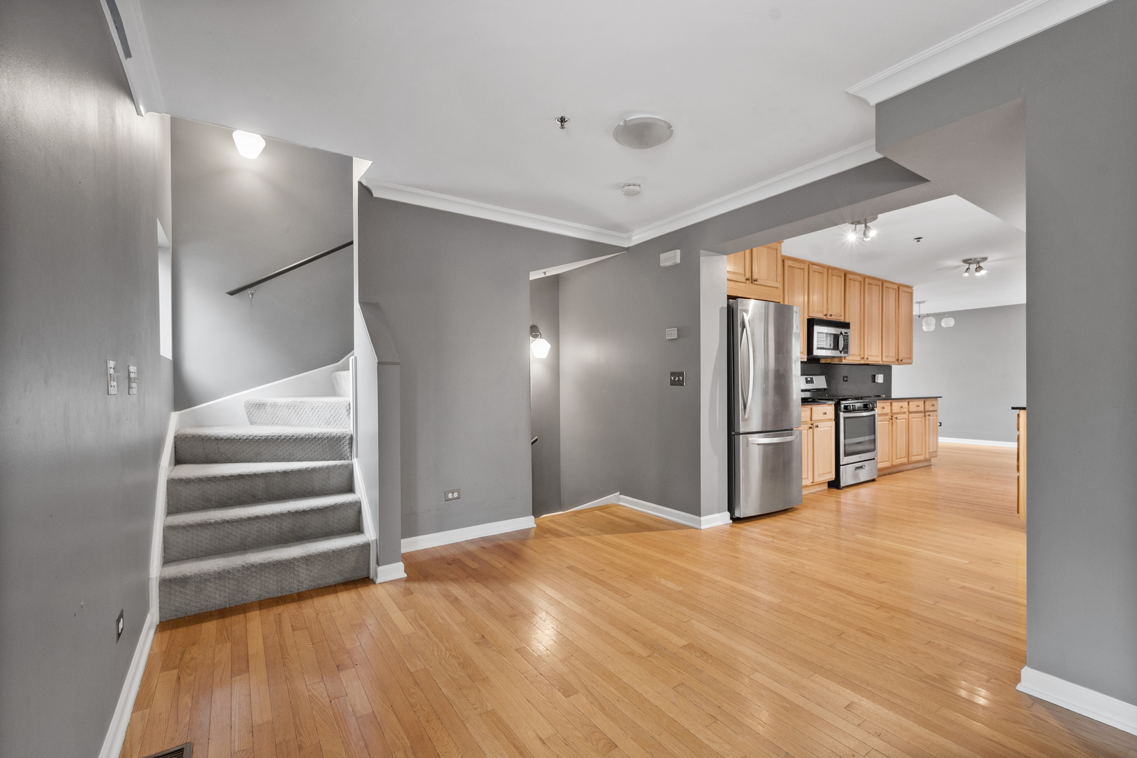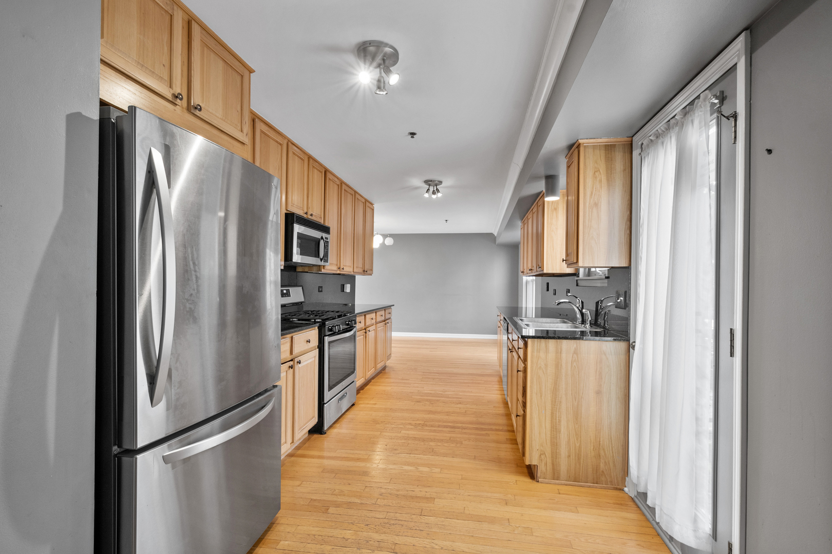 Charming well maintained townhome with attached garage parking! Lovely hardwood floors throughout with tons of natural light in the living room plus a fireplace and charming built-ins. Ample kitchen and dining space perfect for entertaining. The private balcony offers a perfect spot to unwind. 2 spacious bedrooms and two updated baths plus a den! The washer and dryer are conveniently located on the second floor near the bedrooms. Located on a desirable corner lot! New water heater 2019, New Washer/dryer, refrigerator 2024