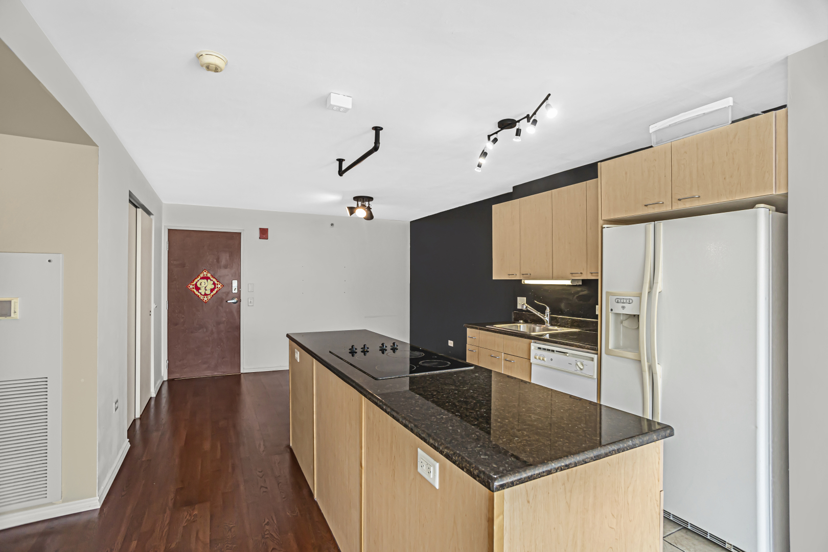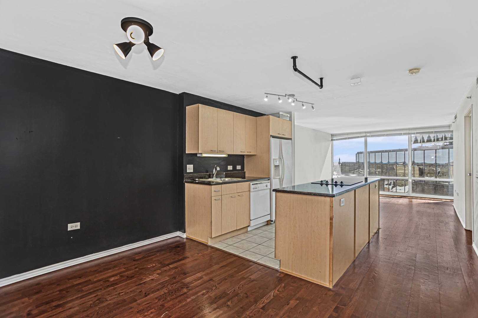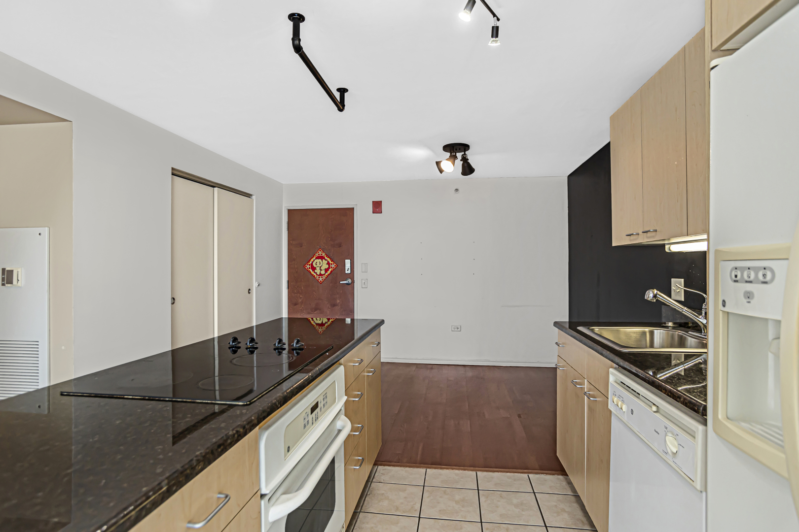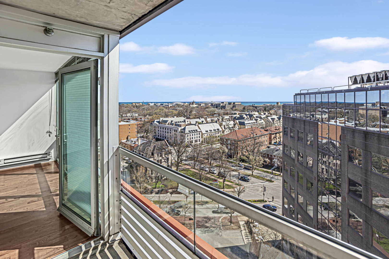 Lake Views! In this Spacious 1bed/1 bath with balcony, garage, pool and doorman in Optima Horizons steps to downtown Evanston. Beautiful unit has open floor plan, living room with hardwood flrs and floor to ceiling windows, gorgeous lake and East views, large dining room or den, beautiful bathroom, large bedroom, in unit laundry, full amenity building near transportation, Northwestern, and lakefront.